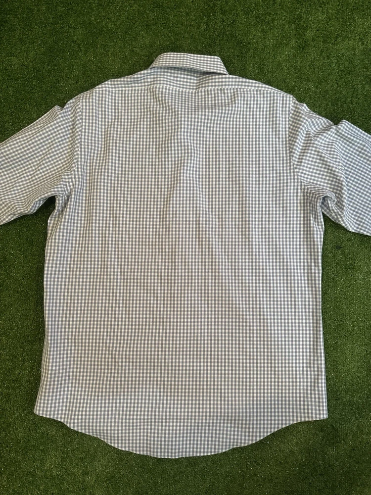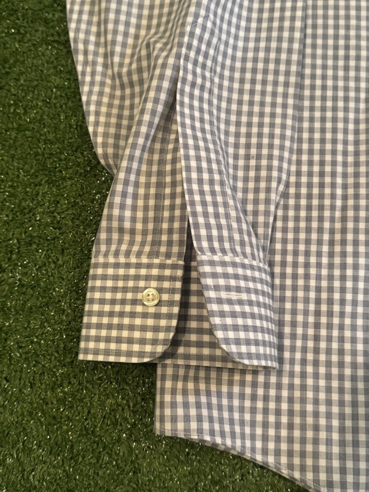 Brooks Brothers Milano Mens 17-34 Supima Cotton Plaid Dress Shirt Black White Shirt is in excellent condition no flaws worn only maybe 3-4 times