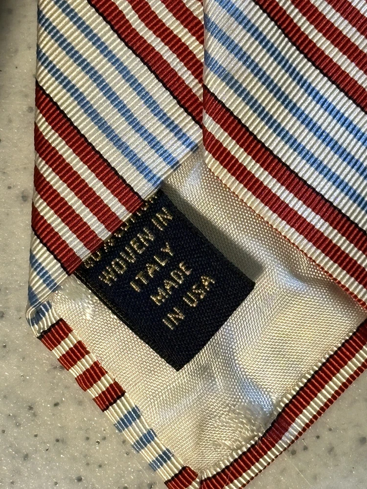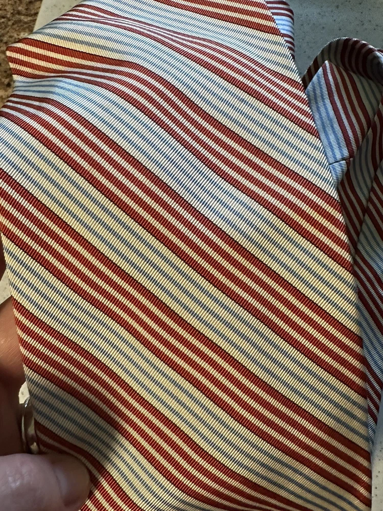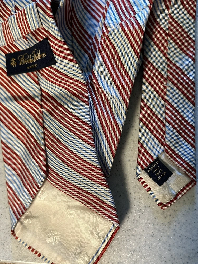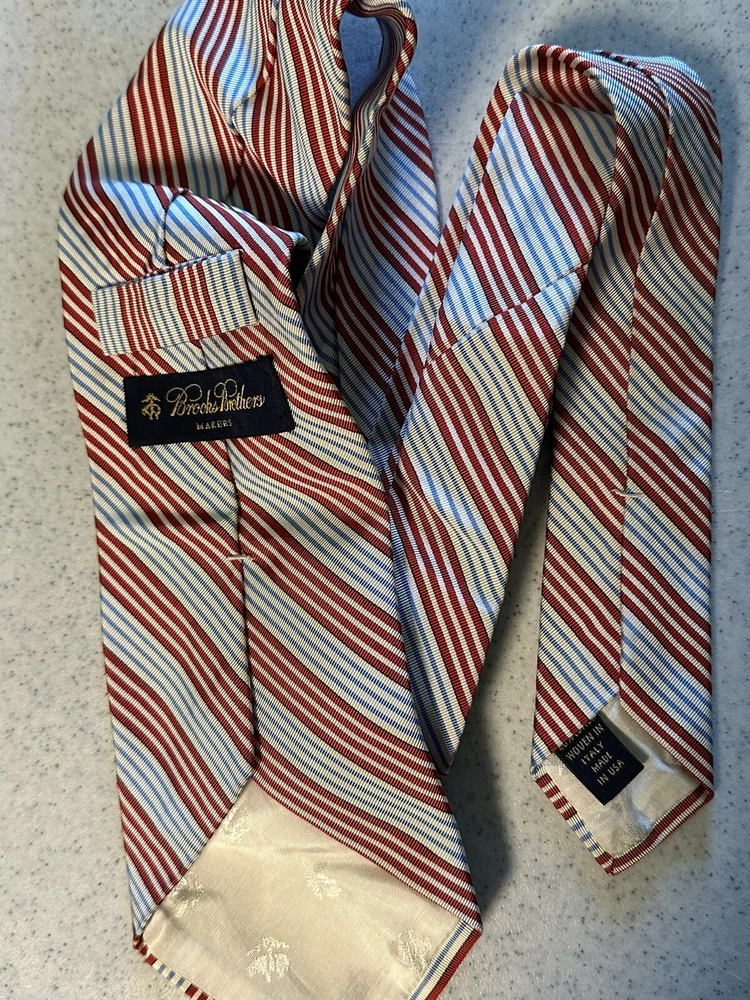 Add a touch of sophistication to your wardrobe with this stunning Brooks Brothers neck tie. The red, white, and blue striped pattern is both classic and stylish, making it perfect for any occasion. Crafted from high-quality silk, this tie is both durable and comfortable to wear. Ideal for the modern man, it is suitable for any formal or casual event. Accessorize with ease and elevate your outfit with this must-have piece.