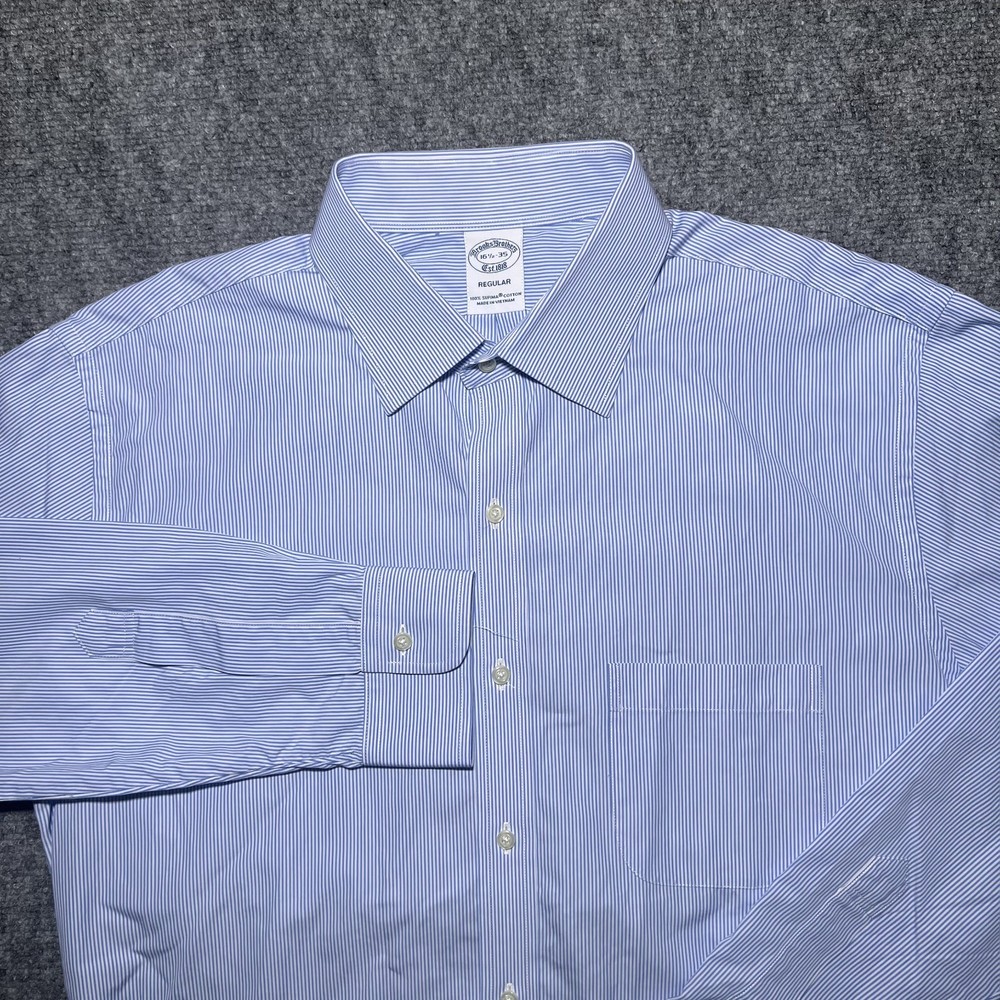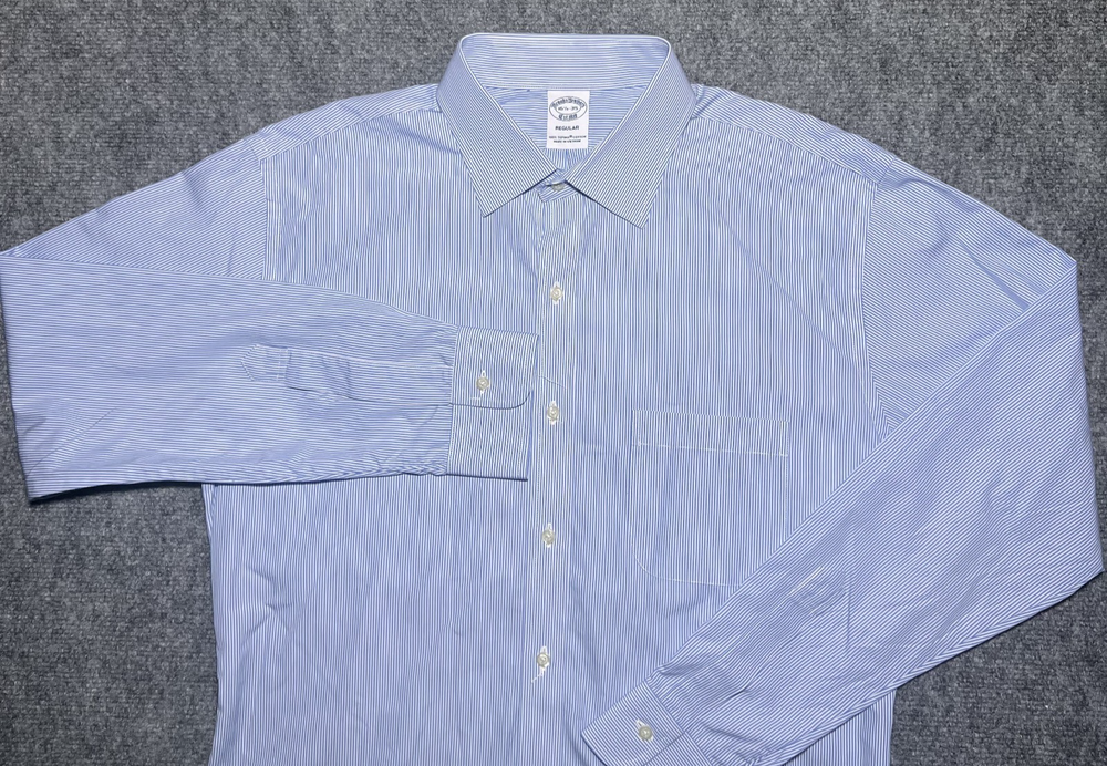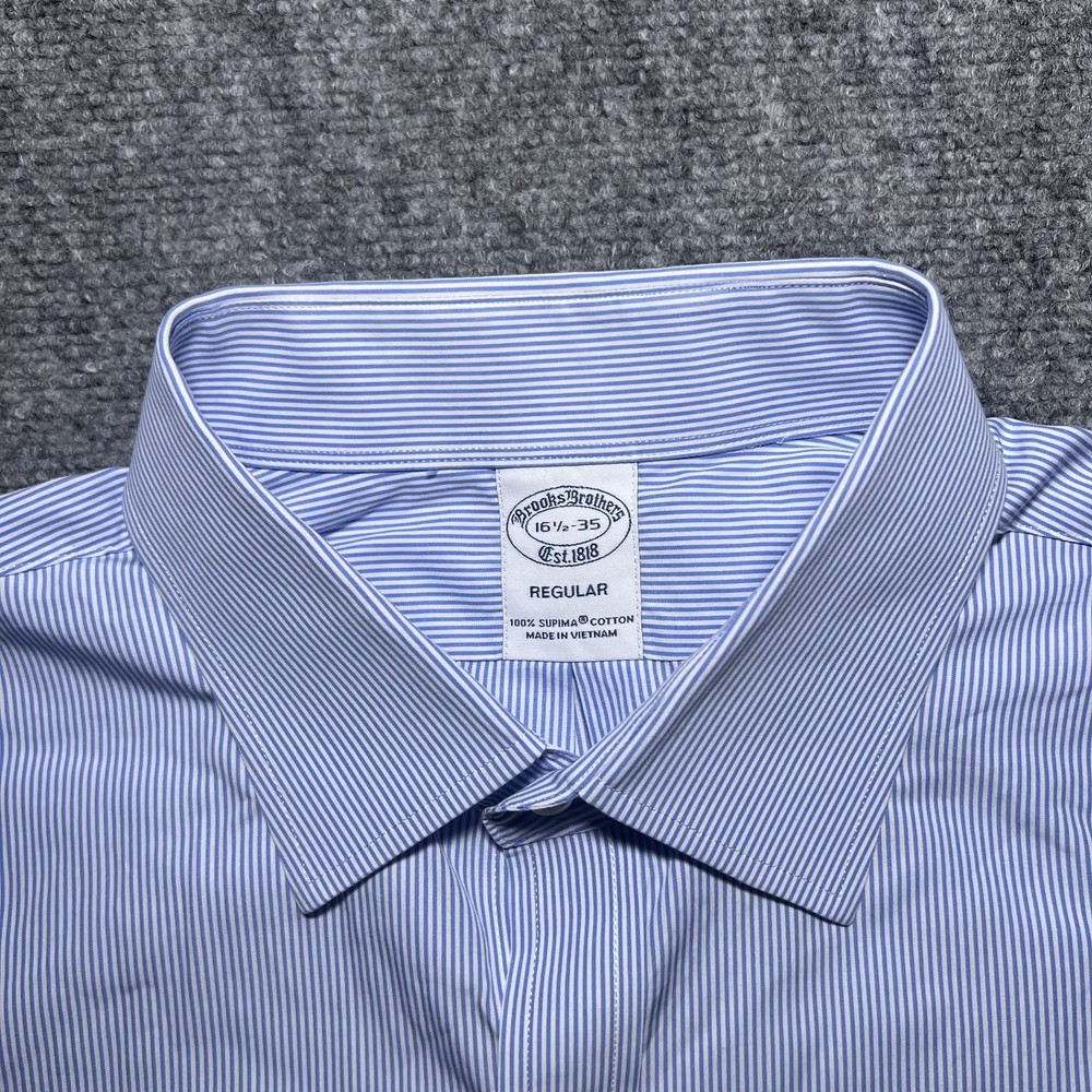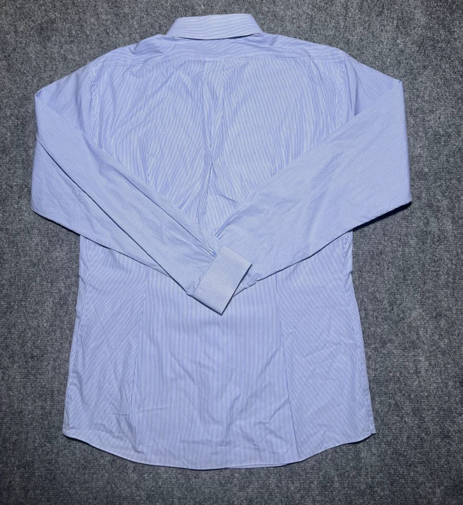 Roundtree & Yorke Gold Label Dress Shirt Mens 16 34/35 Blue Stripe Non Iron