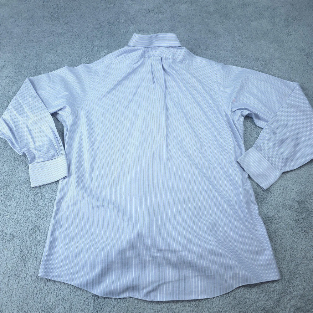 Brand: Brooks Brothers Style: Men's long sleeve striped non-iron dress shirt from the Brooks Brothers 346 collection in a slim fit. Color: Light blue with white and navy vertical pinstripes. Tag size: 17 neck, 36/37 sleeve (men's slim fit sizing). Material: 100% all cotton per inner neck label. Features: Point collar, full button front placket, long sleeves, two-button adjustable barrel cuffs, back yoke with center box pleat, and a curved shirttail hem designed to stay tucked during wear. Branding: Woven Brooks Brothers 346 neck label with size and fit callouts plus interior care label with laundering instructions. Country of origin: Made in Malaysia. Use: Classic non-iron dress shirt ideal for business, office wear, formal events, and polished everyday outfits. Item is in gently worn pre-owned condition. Item may contain normal signs of wear, blemishes, discoloration, creases and/or other signs of distress. Photos depict the exact item you will receive including measurements . Please refer to photos for full details prior to purchasing. If need be please measure against a similar clothing item you own. Items are cleaned in accordance with eBay's policies and standards and stored in a smoke free weather controlled environment. Fast USPS Shipping - 30 Day Free Returns - Hats Ship in a Box