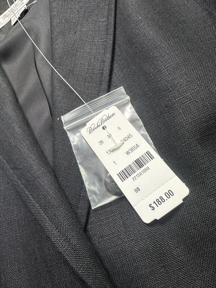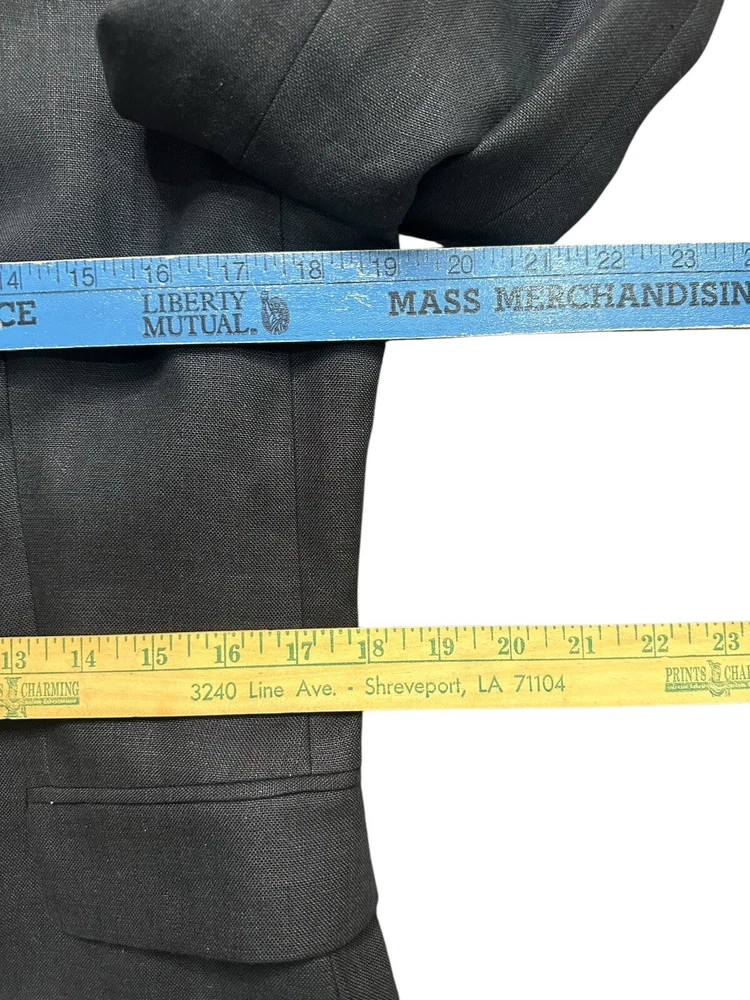 Please see pictures for an accurate description. Same-day business shipping. Pet loving smoke free. Should be home. Thank you so much for your interest. If you have any questions, please feel free to ask. Elevate your professional wardrobe with the Brooks Brothers Irish Linen 2 Piece Pant Suit in a classic black color. This suit is perfect for business occasions, interviews, or professional gatherings. The jacket features a single-breasted cut with a two-button front button style, notch lapel style, and three-button sleeve length. The pants are new by Bloomingdale’s linen blend and have a relaxed fit with a 33-inch inseam and 31-inch waist size, making them comfortable to wear for extended periods. The suit is made of high-quality linen material with stretch features, making it breathable and comfortable to wear during summer and spring. The lining material is acetate, and the set includes both the jacket and pants. This vintage suit has a solid pattern and is suitable for women in the regular size type. Made in Thailand, this Brooks Brothers suit is a must-have for any professional wardrobe.