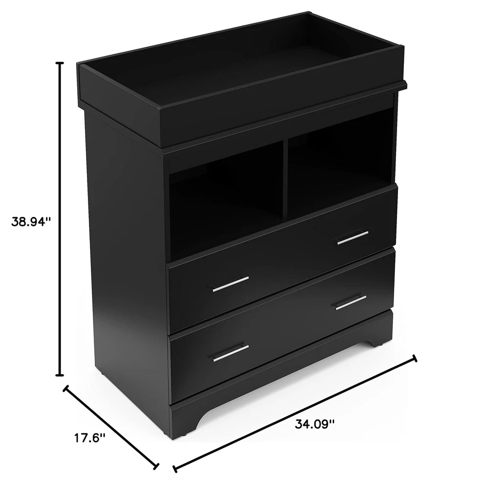 Neighborhood service Brookside 2 Drawer Changing Table Dresser (Black) – Nursery Dresser Organizer with Changing Table Topper, Chest of Drawers for Bedroom with 2 Drawers, Universal Design ENJOY THE FEATURES NURSERY AND KIDS BEDROOM DRESSER: Nursery and kids 2 drawer dresser with universal design; Crafted of wood composites, laminated with a durable, easy-to-clean PU coated surface, and includes Euro drawer glides; Assembly required; Anti-tip kit included CHANGING TABLE DRESSER: Chest of drawers with open cubbies and changing table topper; Changing table topper is removable for transition from nursery to kids bedroom; Changing topper fits standard size changing pad; Changing pad sold separately SAFETY TESTED: Tested to meet or exceed applicable CPSIA & ASTM International category safety standards including ASTM F2057 safety specification for clothing storage units, intended to reduce furniture tip-over hazards to children aged 5 & under INTERLOCKING DRAWER SYSTEM, TIP-OVER RESTRAINT KIT: For added safety, dresser includes innovative interlocking drawer system and tip-over restraint kit to reduce furniture tip-over hazards; Tested to meet or exceed all applicable category safety standards. Includes pre-installed drawer glides for quicker, easier assembly. AWARD-WINNING BRAND: Exclusively from Storkcraft, proud recipient of the 2022 Women’s Choice Award for 9 out of 10 Customer Recommended Baby & Kids Furniture and Parent Tested Parent Approved (PTPA) Seal of Approval Premium "designer" accents, baby-changing functionality, and ample nursery storage are combined into one stunning package with our all-new Storkcraft Brookside 2 Drawer Changing Chest. This stylish & sturdy chest features a changing table topper that is designed to fit all standard-sized changing pads. In addition to the changing table topper, the Storkcraft Brookside 2 Drawer Changing Chest features 2 spacious drawers (complete with Euroglide drawer tracks and durable steel hardware) and 2 open storage shelves. The Brookside's sleek metal drawer handles add a premium, designer look and feel to your nursery. Crafted from durable engineered wood, and available in 2 baby-safe, non-toxic finishes, the Storkcraft Brookside 2 Drawer Changing Chest complies with all applicable federal safety standards. Also, the changing topper is JPMA Certified. To complete your nursery, pair the Storkcraft Brookside 2 Drawer Changing Chest with the rest of the Brookside Collection: the Storkcraft Brookside 3 Drawer Chest, Storkcraft 3 Drawer Combo Dresser, Storkcraft Brookside 4 Drawer Chest, or Storkcraft Brookside 6 Drawer Double Dresser. Exclusively from Storkcraft, the longest standing name in baby furniture and proud recipient of the 2022 Women's Choice Award for 9 out of 10 Customer Recommended Baby & Kids Furniture. Easy assembly required. Backed by Storkcraft's 1-year limited warranty and expert customer care. Item model number 03662-10B Style 2 Drawer Chest Country/Region of origin Malaysia Material Laminate Finish Type Laminated Material Type Laminate Warranty Type Limited Number of Pieces 1 Room Type Baby,Bedroom,Nursery Assembly Required Yes Batteries required No Number of Drawers 2 Style 2 Drawer Chest Brand Stork Craft Model Name Brookside Additional product features Durable Material Composition Engineered wood Item Weight 90.5 pounds Special Feature Durable Number Of Items 1 Mounting Type Freestanding Color Black Maximum weight recommendation 30 Pounds Global Trade Identification Number 00810003666963 Floor type Engineered Wood Product Dimensions 17.6"D x 34.09"W x 38.94"H Product Care Instructions Wipe with Damp Cloth Size 2 Drawer 34.09 "h x 17.6 "h x 38.94 "h. Weight: 30.0 lb PAYMENT We accept all payments via Ebay using Credit Cards , PAYPAL , Apple Pay and many others SHIPPING We are always working hard to ensure your package arrives as soon as possible. Please understand that some factors like weather, high postal traffic, and the performance of shipping companies are outside of our control. We offer free shipping to the lower 48 states and ship within 3-5 business days of payment, usually sooner. We do not accept P.O. Boxes. Please provide a physical address. We do not ship internationally at this time. DELIVERY & RETURN POLICY We do not offer returns unless the item violates eBay policies. Please be aware these polices only make sellers accept returns if the item violates eBay's Buyer Guarantee. If you would like to learn more about this please visit eBay's Help Page. Thank you for your business