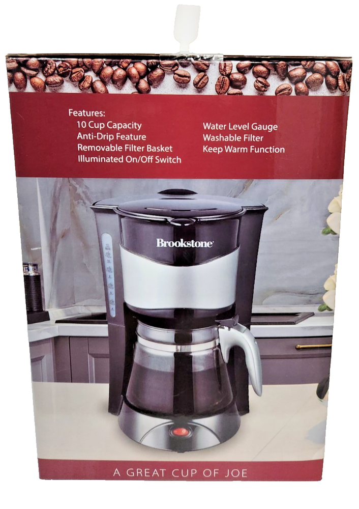 The Brookstone Coffee Maker 10 Cup is a filter coffee machine designed for brewing ground coffee. With its sleek black plastic design and anti-drip feature, this coffee maker is both stylish and functional. It includes convenient features such as a water level indicator, water tank, keep warm function, and a permanent filter for easy maintenance. Made in China, this model # INV00823 provides a hassle-free way to enjoy a fresh and aromatic cup of coffee every morning. We combine shipping on multiple listings purchased, so please visit our store for more great deals! Cyber Store Central | eBay Stores