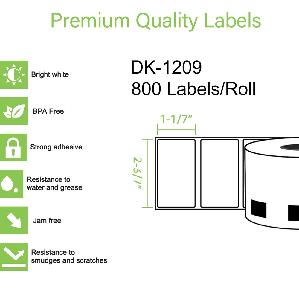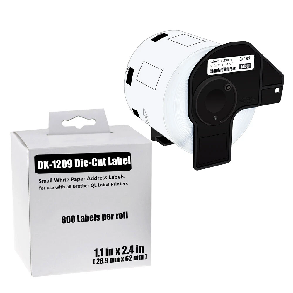 Label size: 28.9 mm x 62 mm (1.1in x 2.4in) Model: DK-1209 , DK1209 Resistant: Resistance to water & grease & smudges & scratches Brand: 9leafclover Label Type: Address Number of Labels per Roll: 800 Labels per roll For use with Brother2: QL-700, 710W, 720NW, 800, 810W, 820NWB For use with Brother3: QL-1050, 1050N, 1060N, 1100, 1110NWB gtin13: Does not apply UPC: Does not apply Type: Die-Cut Samll White Paper Address Labels Color: White Country/Region of Manufacture: China MPN: Does Not Apply For use with Brother1: QL-500, 550, 570, 570VM, 580N, 650TD Printing technology: Direct Thermal Holder: Each Roll With Permanent Frame Cartridge
