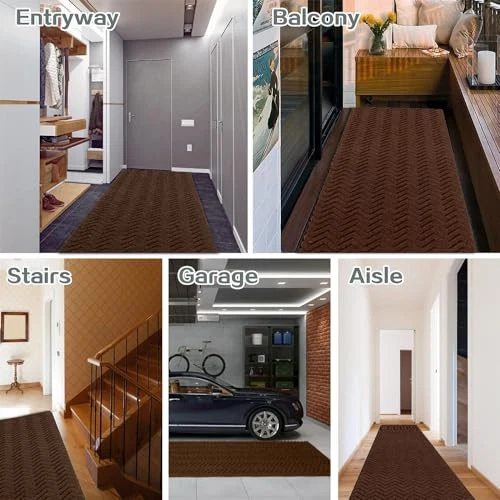 This runner rug is a game-changer! The non-slip rubber backing keeps it securely in place, whether indoors or outdoors. The brown triangle design adds a stylish touch to hallways, kitchens, or entryways. It’s durable, easy to clean, and the perfect size for high-traffic areas. Love how it’s both practical and stylish—great purchase!