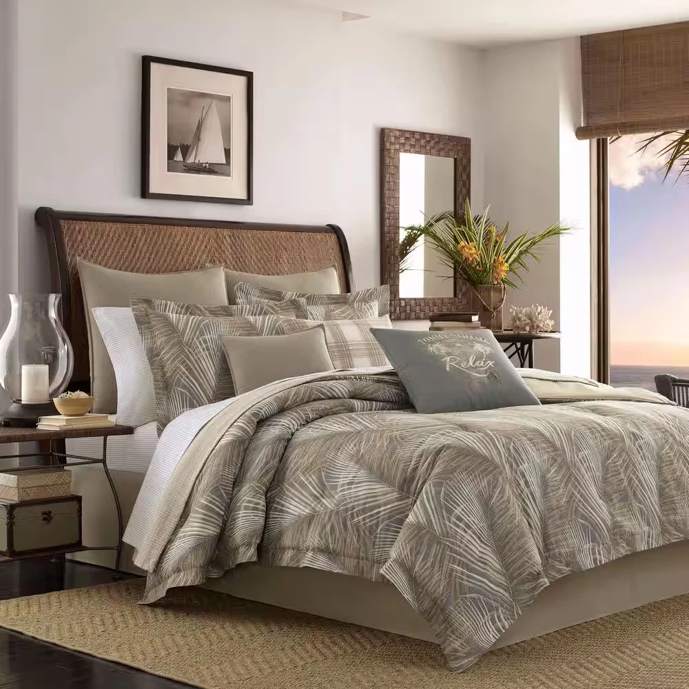 Fast Shipping On All Items 30 Days Money Guarantee Customer Support Excellent Service 100% Satisfaction Satisfaction Guaranteed Brown Botanical Cotton California King Comforter Sham Set Soft Comfort 4 Piece Specification Bedding Material Cotton Care Instructions Machine Wash Color Brown Color Family Brown Decor Type Bedroom Linen Decorative Accents No Decorative Accents Features Reversible,Soft Fill Material Polyester Lifestage Adult Linen Type Comforter Set Material Family Cotton Number of Pieces 4 Pattern Type Botanical Returnable 90-Day Set Includes Bed Skirt,Comforter,Sham Size California King Style Farmhouse Thread Count 0 Certifications and Listings No Certifications or Listings Comforter Length (in) 96 in Comforter Width (in) 110 in Sham Length (in) 21 in Sham Width (in) 37 in 110.0 inches x 96.0 inches. Weight: 0.0 grams Item Description Cotton cover and polyester fill ensure softness and comfort Reversible cover features 2 beautiful patterns for versatility Elegant design in neutral tones complements any style of decor Create an elegant island oasis at home in sand swept neutral tones of driftwood gray and natural khakis with warm ivory accents. You can almost feel the cool ocean breeze rustle the grove of palm fronds in this beautiful printed bedding ensemble. Tailored menswear inspired accents are woven and embroidered on the European shams and decorative accent pillows that have a discrete embroidered marlin logo. A signature panel print canvas accent pillow adds a casual note, spelling out Tommy Bahamas favorite mood: Relax. Queen Set includes: One queen comforter (96 in. L x 92 in. W), two standard shams (20 in. L x 26 in. W) and one queen bedskirt (60 in. L x 80 in. W), King Set Includes: One king comforter (96 in. L x 110 in. W), two king shams (20 in. L x 36 in. W) and one king bedskirt (78 in. L x 80 in. W), California King Set Includes: One king comforter (96 in. L x 110 in. W), two king shams (20 in. L x 36 in. W) and one california king bedskirt (72 in. L x 84 in. W). 100% cotton Comforter set includes comforter, 2-coordinating shams and 1-bedskirt Bed skirt is a 15 in drop Midweight with a fluffy look, clean finish with excellent drape Coordinating decorative pillows sold separately Machine wash, cold, do not bleach, use extra large capacity machines, tumble dry, gentle, low heat About us We offer the best prices around on high quality products. Our E-store includes media such as books, movies, music and games while offering electronics, toys, sporting apparel, clothing, tools, general home, garden items and more. Shipping We are always working hard to ensure your package arrives as soon as possible. Please understand that some factors like weather, high postal traffic, and the performance of shipping companies are outside of our control. We offer free shipping to the lower 48 states and ship within 2-3 business days of payment, usually sooner. We do not accept P.O. Boxes. Please provide a physical address. For shipping outside of the continental USA, we only use eBay's Global Shipping Program.The item is shipped to KY and then sent to the rest of the world. International customers are responsible for all duties and taxes. Continue to check out to calculate costs for shipping the item to your country. Messages regarding eBay's Global Shipping Program MUST be directed at eBay EXCLUSIVELY. Returns We offer a 30-Day Return Policy on items in which you are not completely satisfied with. You have the option of a full-refund or an exchange of the item. No returns are available on items shipped outside of the USA Satisfaction We try over very best to make sure every customer is completely satisfied. If there's a problem, message us! We're happy to help. Payment Options Shop With Confidence