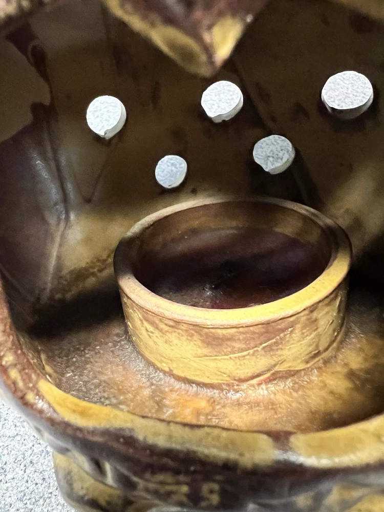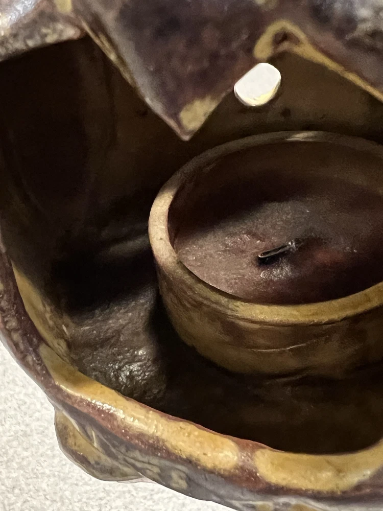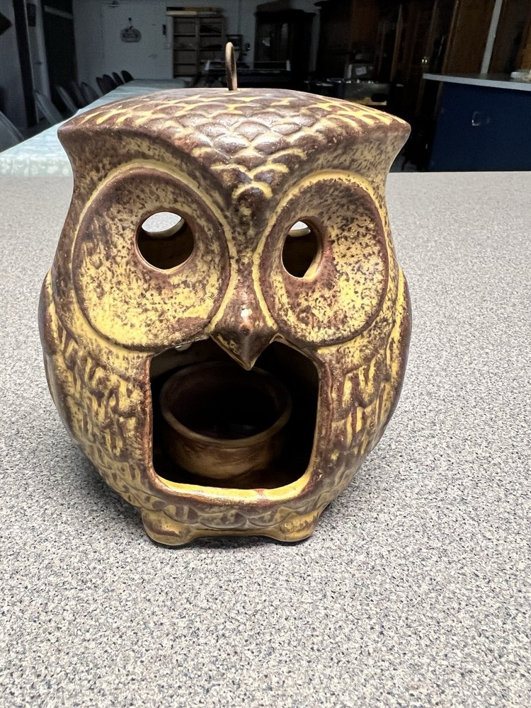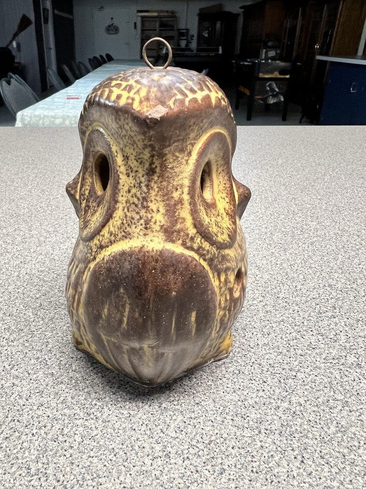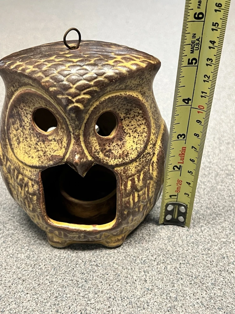 Brown Ceramic Owl Hanging Tea Light Candle Holder Stoneware 2 Sided Lantern READ good pre-owned condition - there is a partial candle and some wax residue