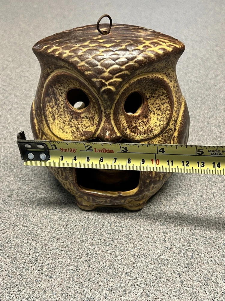 Occasion: All Occasions Seller Notes: “good pre-owned condition - there is a partial candle and some wax residue” Antique: No Suitable For: Tea light Color: Brown Country/Region of Manufacture: Taiwan Type: Candle Holder Era: Late 20th Century (1970-1999) Subject: Lantern Finish: Textured Style: 1970s Shape: Owl Time Period Manufactured: 1970-1979 Brand: Unbranded Material: Ceramic Features: Hoop For Hanging, Tea Light Candle Holder Character: Owl Size: Medium