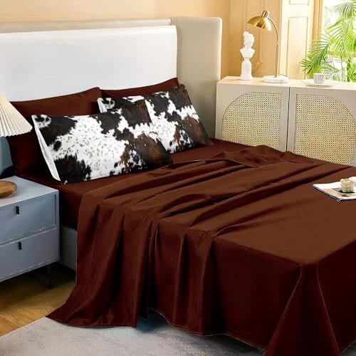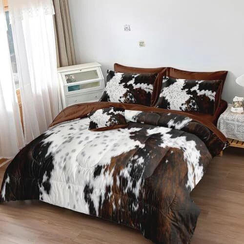 Brown Cowhide Comforter Set Queen, 8 Pieces Bed in a Bag Black White Cow Skin