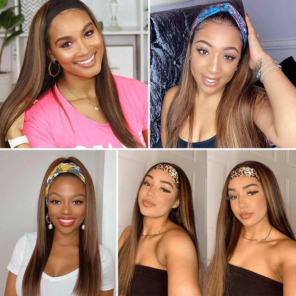 Brown Headband Wigs Long Straight Human Hair Highlight Glueless Wig No Lace Soft -Feature: 100% Brand New and High Quality! Material: High Temperature Fiber Item Type: Wig Texture: Natural Wave Product Weight: 310g Length:long You can use the blower (cold air) or hair stick (better not high temperature) to change the style yourself You can cut or trim to the styles you like. Very stylish design with natural looking and soft touch. You can wear it to parties or for daily use. The size is adjustable and no pins or tape should be required, well fits for the most. You can adjust the hooks inside the cap to the correct size for you. The item is easy to wash and care just using a dish of shampoo in cold or lukewarm water. Note : 1:Due to the different between different monitors ,the picture may not reflect the actual color of the item ,thank you ! 2:Please allow 2-4 cm different due to manual measurement ,thanks (all measurement in cm and please note 1cm= 0.39inch) Package include: 1 x Wig Payment Terms of sales Contact us Payment We accept PayPal only. We ship to your PayPal address. Please make sure your eBay address is the same as your PayPal address before you pay. Terms of sales All the destination country local tax is the buyer responsibility. All the items will a "GIFT" description and a Low value for faster custom process. We suggest all buyers to insure their items. Contact us We hope our buyers left positive feedback when receive the package and be pleased with them, we will also left positive feedback to all of our kind buyers.If you are unpleased with it, Please contact us firstly we will find a solution to meet your requirement and enhance the satisfaction. ENJOY YOUR BIDDING NOW!