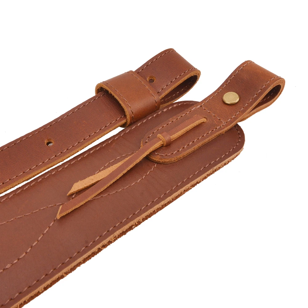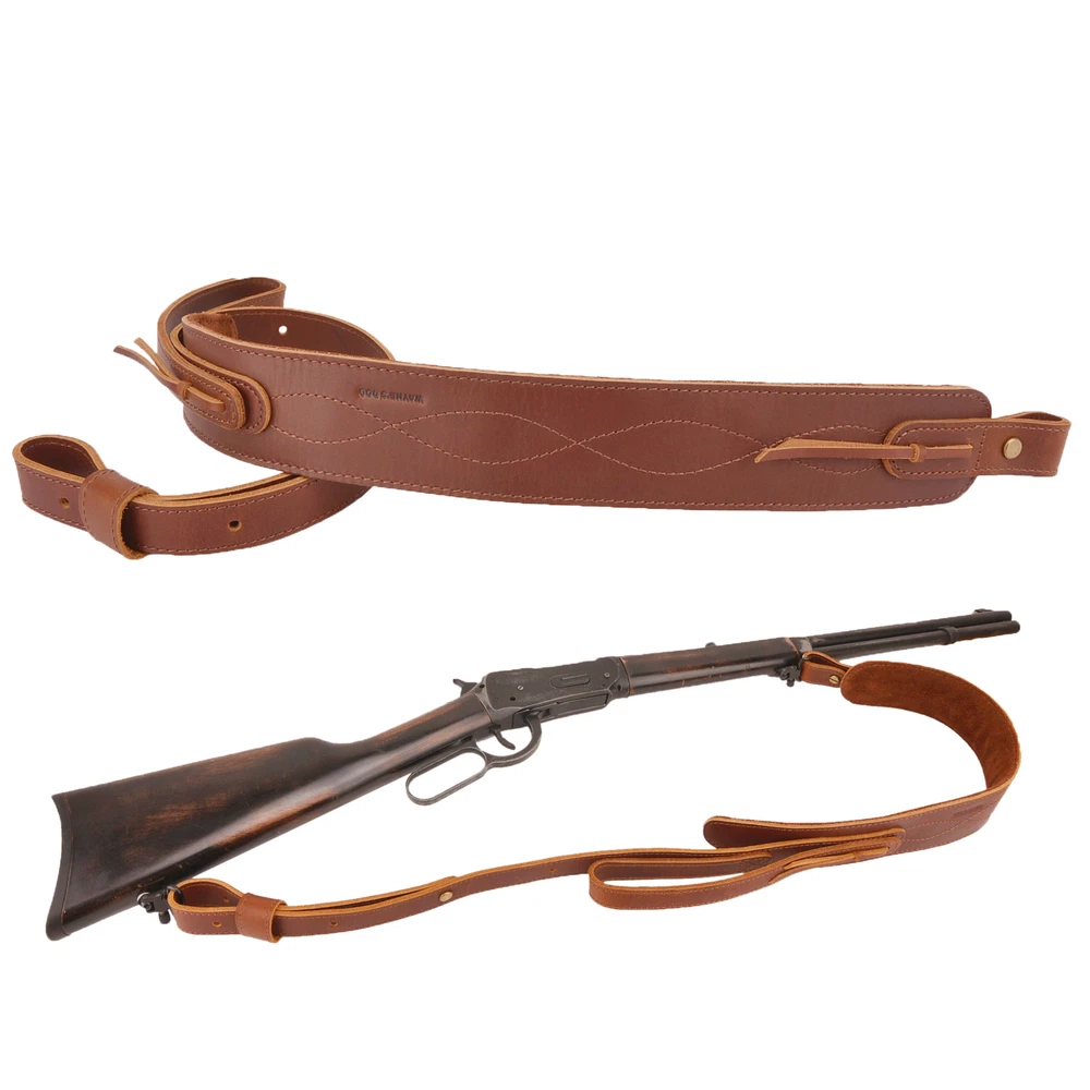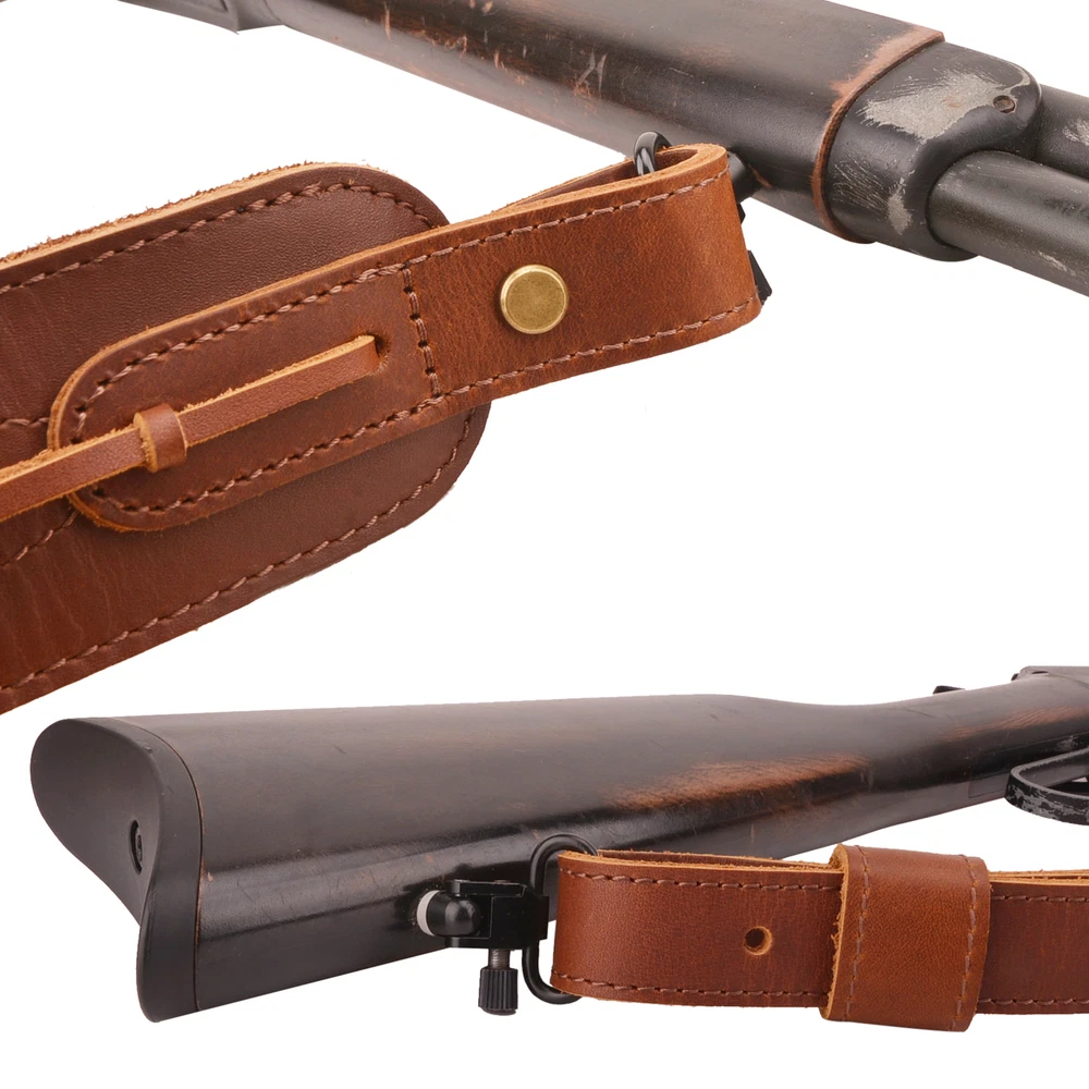 【Material】Made of premium full grain veg tan leather and soft suede inner cushion makes you feel very comfortable when carry gun. 【Adjustable rifle strap sling】Our padded rifle sling can be adjustable from 33.5" to 41.5". 【Fit 1" Swivels】Both ends of the shoulder strap are 1 inch wide, suitable for most rifle swivels. 【 Leather handle loops】The Hunting Shotgun Belt is equipped with leather handle loops fro long term carry.