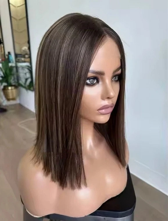$ 168.89Brown Highlight Short 13x4 Lace Front Human Hair Wig for Women Daily