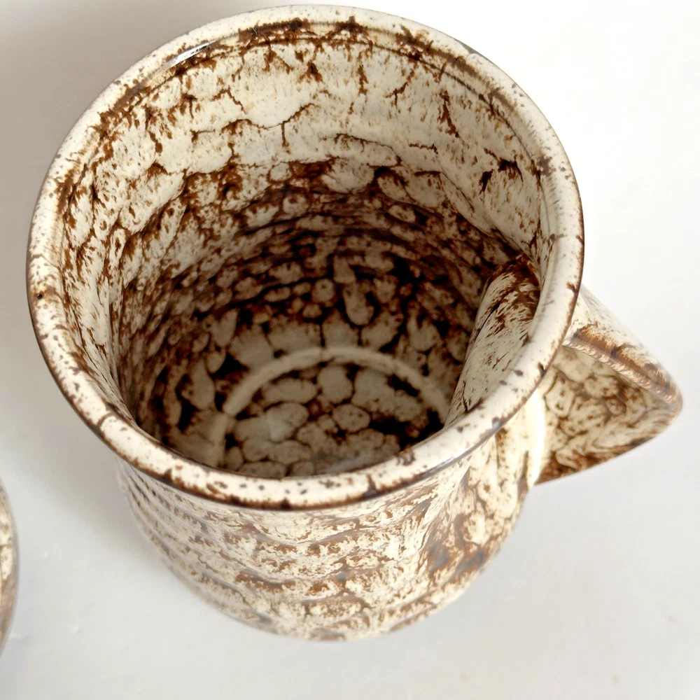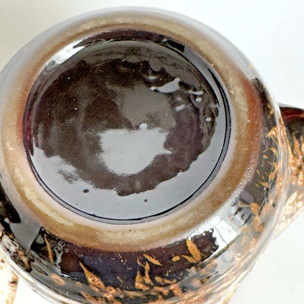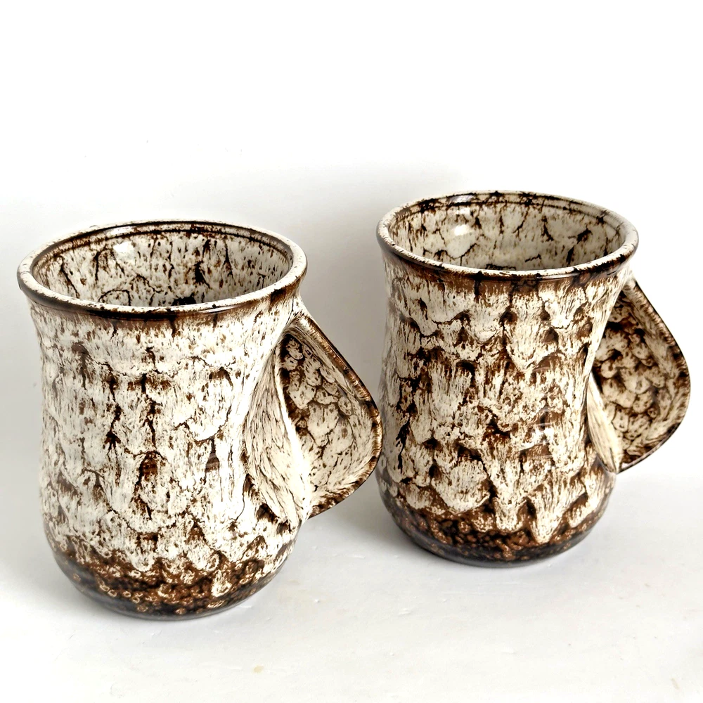 Brown & White Speckled 16oz Right-Handed Mug with Drip Glaze for Coffee or Tea