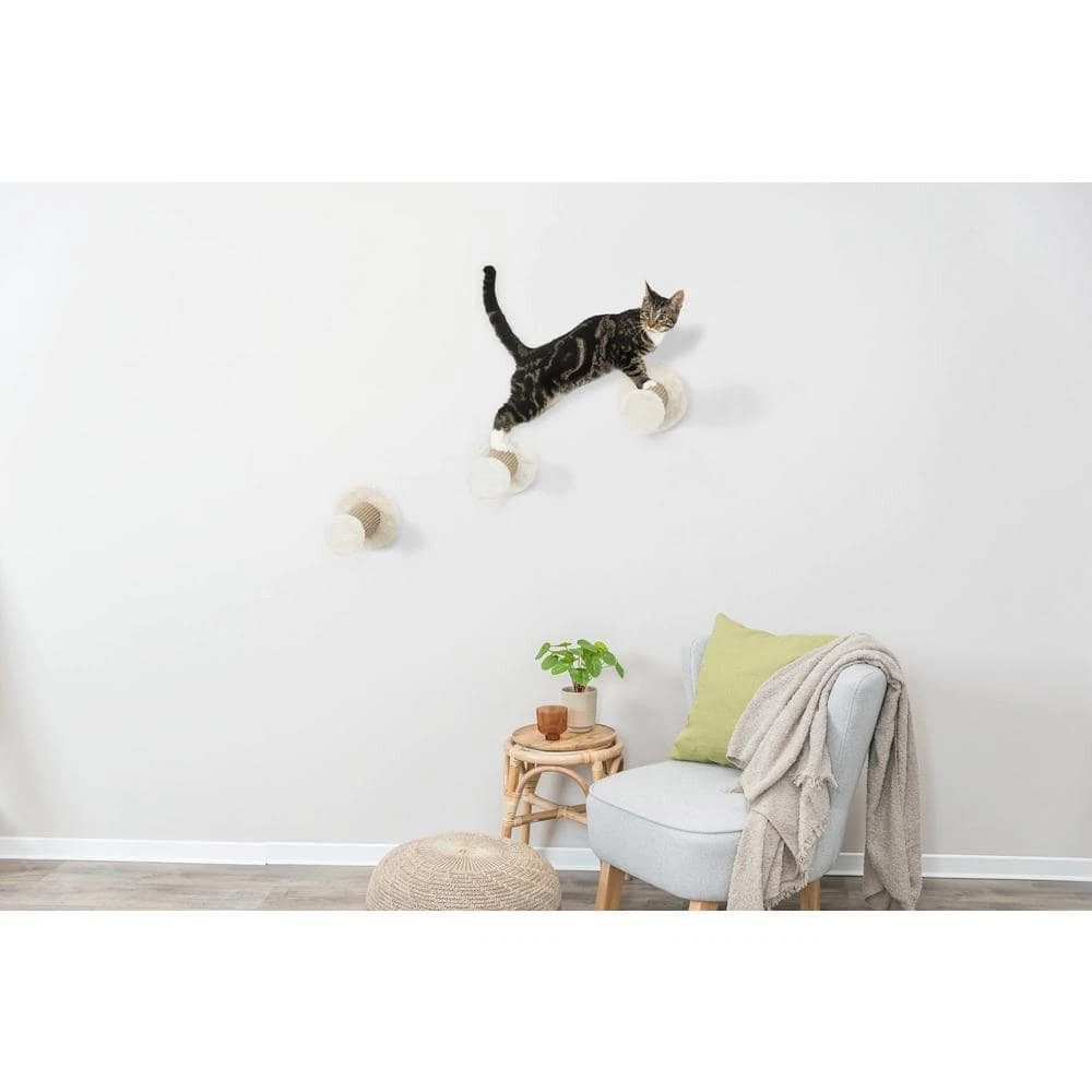 This wall-mounted climbing set is a game-changer for cat owners! My kitty is obsessed with scaling the sturdy sisal-wrapped perches and napping on the plush-covered platforms. It saves so much floor space while giving her the vertical adventure she craves. Installation was simple, and the adjustable design fits any room perfectly. Watching her leap between levels never gets old—pure feline happiness!