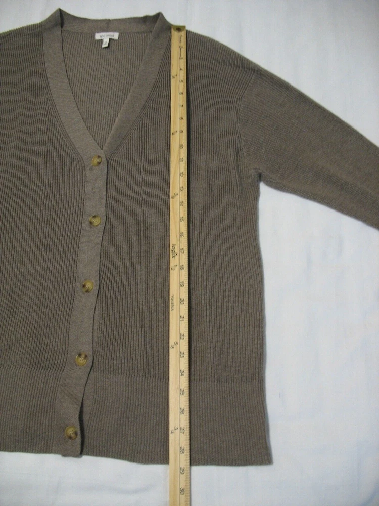 Brand/Item: Ella Moss/Cardigan Sweater Size: XL Description: Brown, v-neck, long sleeve, button front Condition: No stains, no holes and minimal wash wear Tape measure not included.