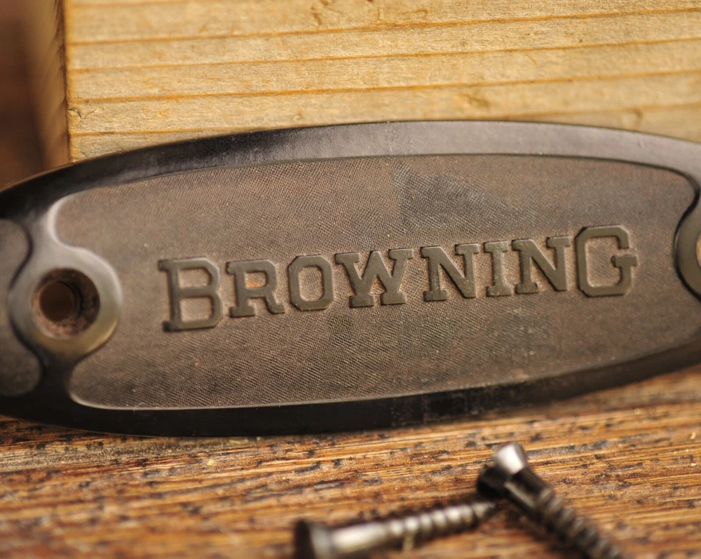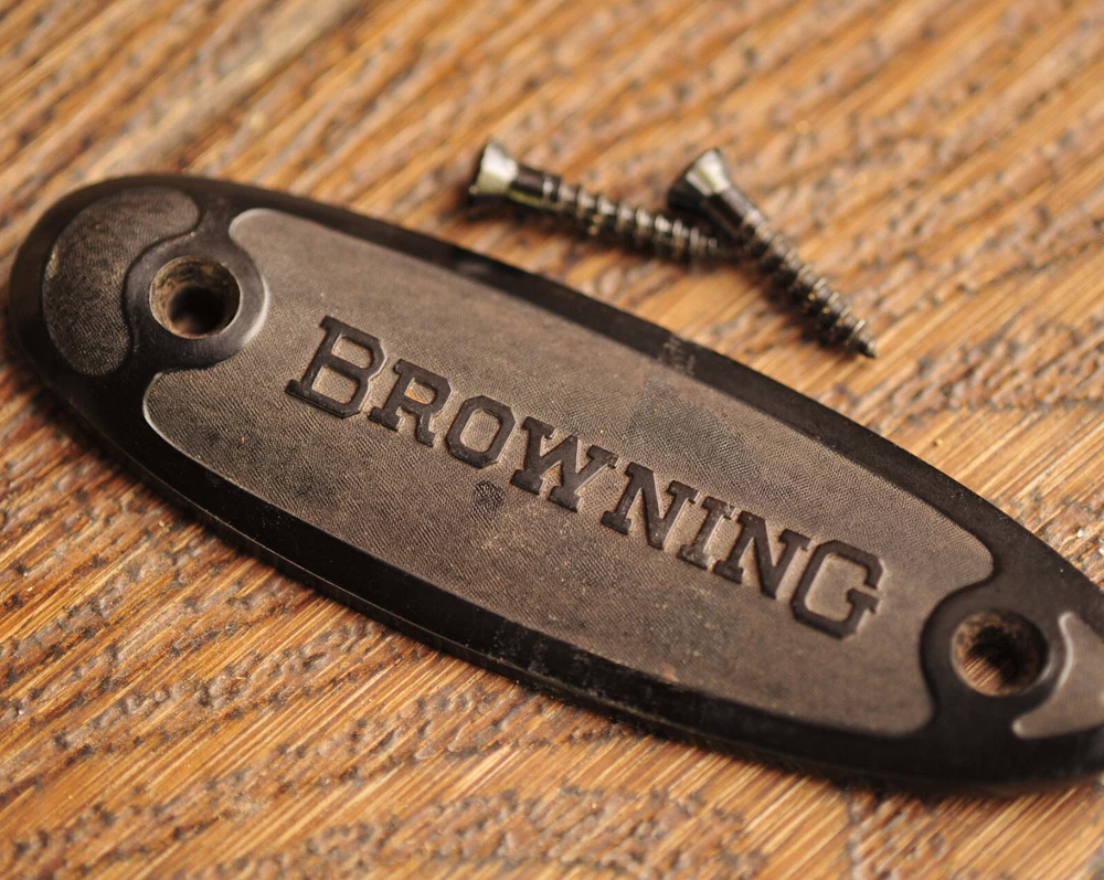 Browning Factory Original Buttplate Slightly Curved w/ Screws. U.S. Shipping Only. Shows normal use and wear. Product shown is what you will receive.