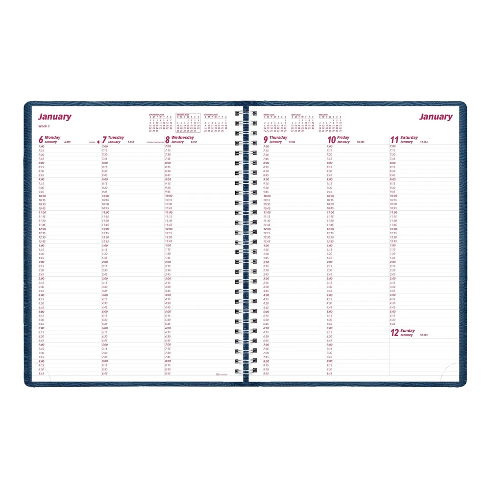 Brownline® 2025 Essential Weekly Planner, Appointment Book, 12 Months, January to December, Twin-Wire Binding, 11" x 8.5", Blue (CB950.BLU-25) The Brownline® Essential Weekly Planner and Appointment Book features 12 months of planning, spanning January 2025 to December 2025, with one week per two-page spread in an appointment schedule format. The lizard-like soft cover is constructed with flexible twin-wire binding for a flat and sturdy writing surface. Weekday appointment schedule from 7:00 a.m. to 8:45 p.m. in 15-minute intervals, Saturday appointment schedule from 7:00 a.m. to 5:45 p.m. in 15-minute intervals, and ruled space for Sunday. Contains numbered weeks, reference calendars of past, current and following four (4) months on each spread, countdown of days passed and days to come (Julian dates), and highlights holidays and phases of the moon. Tear-off corners to help keep place. Extra bonus pages include: three-year calendar, 2025 and 2026 quarterly planners, interest table, metric conversion charts, and dedicated sections for contacts (telephone/address/email) and notes. English. Blue cover with gold date detail, size: 11" x 8.5". Eco-conscious planner crafted from 50% post-consumer recycled fiber paper materials. Certified under FSC® license code: FSC® C102682. The Forest Stewardship Council® enables businesses and consumers to choose products made with materials sourced from responsible forestry, promoting environmentally appropriate, socially beneficial, and economically viable management of the world's forests. Made in Canada. The Brownline® Essential Planner is the product of choice when it comes to selection and affordability. Used in the home, office or classroom the Brownline® Essential Planner meets every possible need and represents a great value. Brownline® Dated Products are produced using acid-free paper to prevent color-change over time and vegetable oil-based inks to help protect the environment. Brownline® Since 1846. (CB950.BLU) Essential Weekly Appointment Book and Planner spanning 12 months, January to December 2025. Week-on-two-pages format and weekday appointment schedule layout from 7:00 a.m. to 8:45 p.m. in 15-minute intervals. Saturday appointment schedule from 7:00 a.m. to 5:45 p.m. in 15-minute intervals and ruled space for Sunday (Monday-Sunday). English. Flexible twin-wire binding with lizard-like, soft cover construction in Blue allows planner to fold back for a flat and sturdy writing surface. Blue cover with gold date detail, size: 11" x 8.5". Stay Organized in 2025 Quality you can Count On Shipping from the USA All of our products are shipped from the USA, ensuring quick delivery to your destination. Payment We offer the following payment methods: PayPal, credit card, bank transfer, and eBay's secure payment system. Free Shipping & Free Returns Shipping within the USA is FREE. Additionally, any return is absolutely free for you. Risk-Free Purchase You have the option to return an item within 30 days without any justification. We cover the return shipping costs! Fast Shipping We ship immediately upon receipt of payment. Generally, the package is delivered within 2-3 days in the USA. If it takes longer, we will contact you. Quality and Costs Made in Europe, USA, China No customs fees or additional charges Total satisfaction guarantee Invoice with declared VAT available upon request in .pdf format Feedback Your feedback is very important to us. After you pay for your purchase, you will automatically receive positive feedback from us.