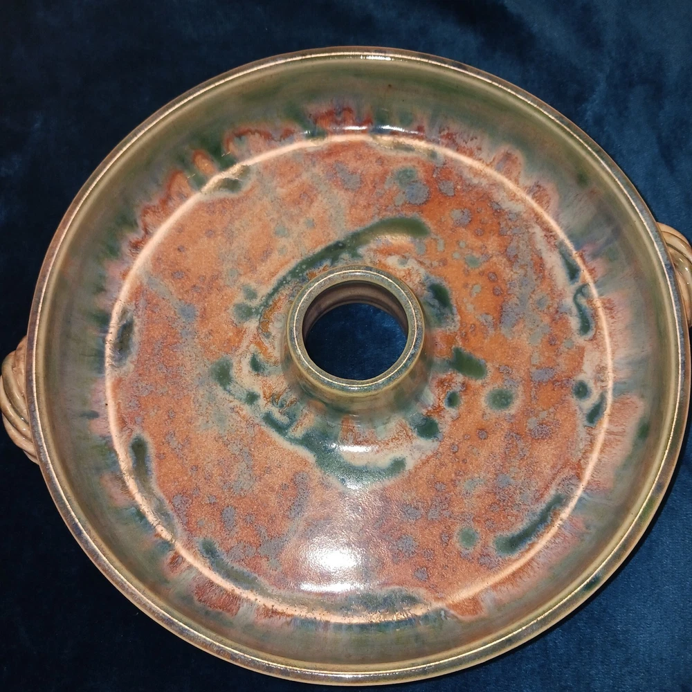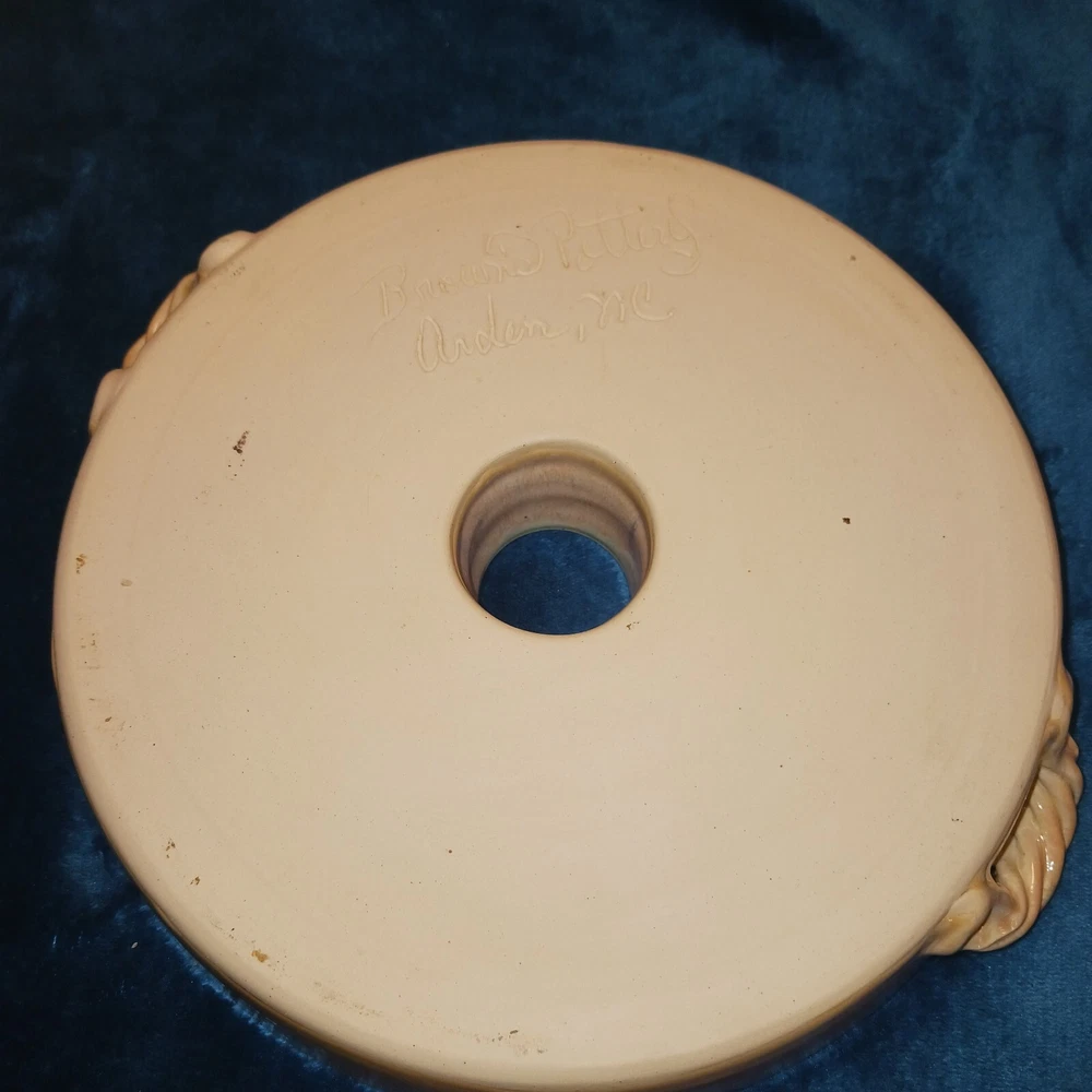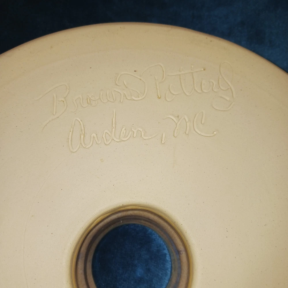 Finish: Lead-Free Glaze Type: baking dish Production Style: Art Pottery Origin: North Carolina Product Line: browns pottery Theme: American Vintage: No Number of Compartments: 1 Production Technique: Pottery Number of Items in Set: 1 Original/Licensed Reproduction: Original Pattern: All-Over Brand: browns pottery Time Period Manufactured: 2000-2009 Shape: Round Material: Stoneware, Ceramic Country/Region of Manufacture: United States Color: Multicolor