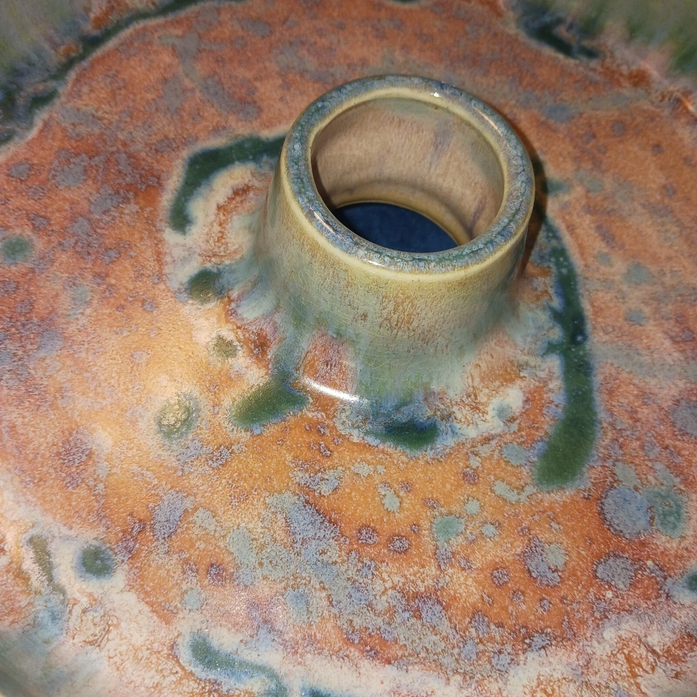 This beautiful baking dish from Browns Pottery is a must-have for any collector of American art pottery. The dish features a unique mottled pattern in multicolor, with a round shape and one compartment for easy baking. Made of stoneware and ceramic, this dish is lead-free and perfect for any kitchen. Measuring 12 inches in diameter, this original piece from Browns Pottery is a licensed reproduction of the brand's product line. The production technique of pottery was used to create a beautiful finish on the dish, making it a great addition to any decorative cookware collection.