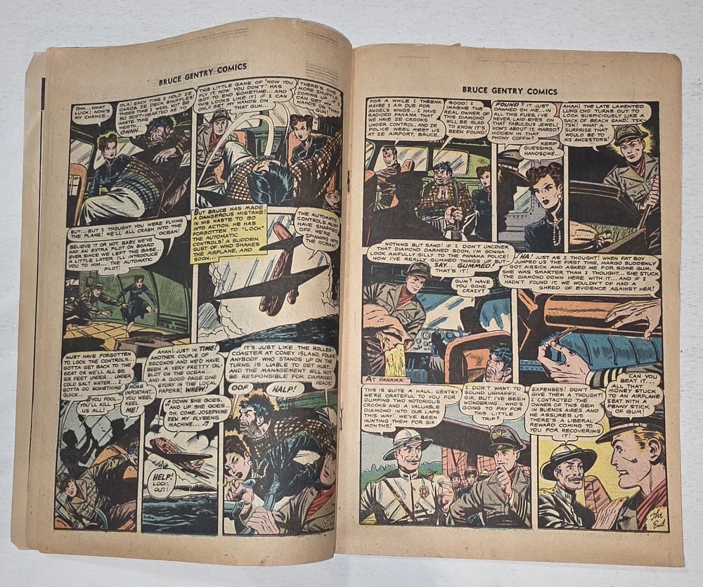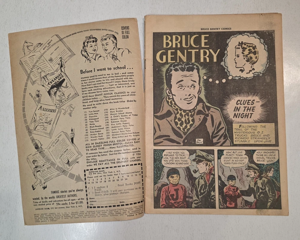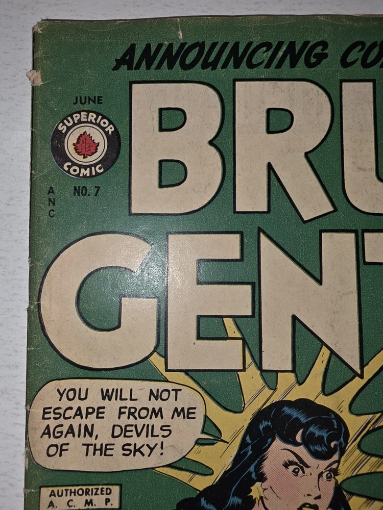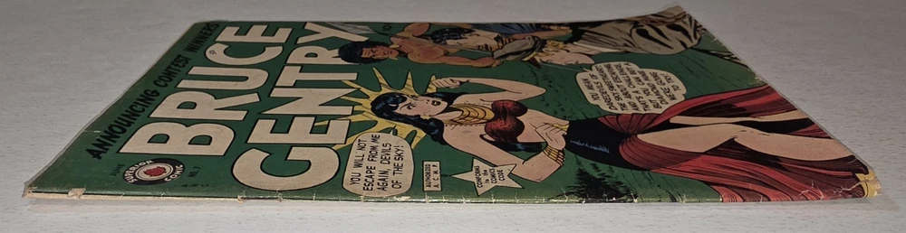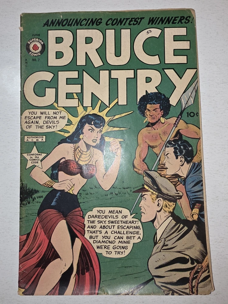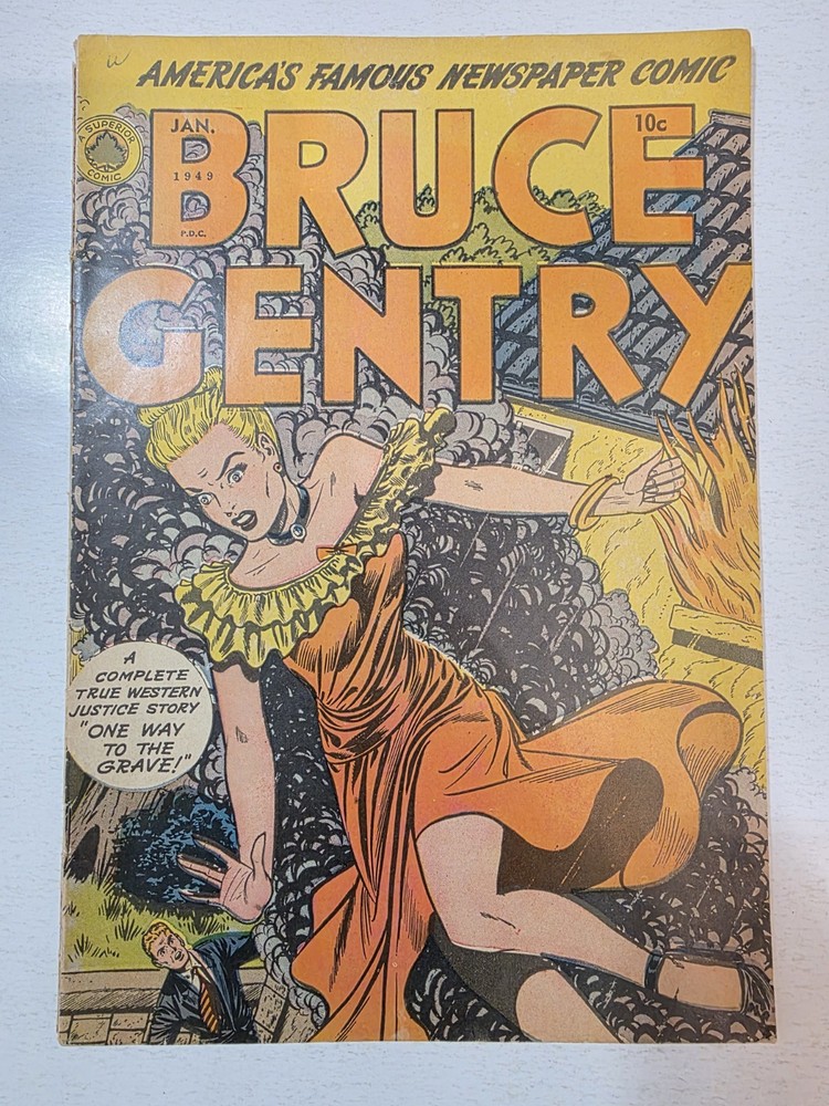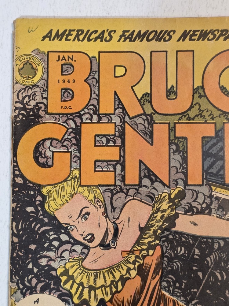 The Bruce Gentry Lot (2) includes two comic book issues from 1949, featuring artwork by Ray Bailey. The GGA (Golden Age) comics are graded VG - G/VG, with issue numbers #3 and #7. Published by Superior Comics, the superhero genre stories are from the US Comics tradition. this lot is a valuable addition to any comic book collection, showcasing the pre-code Golden Age era of comics. #3 G/VG 3" spine split &detached top staple #7 VG - Bagged and boarded - Shipped with Gemini packing to insure no damage during shipping - Usps Priority Check out our 1000s of comics in our store We combine shipping