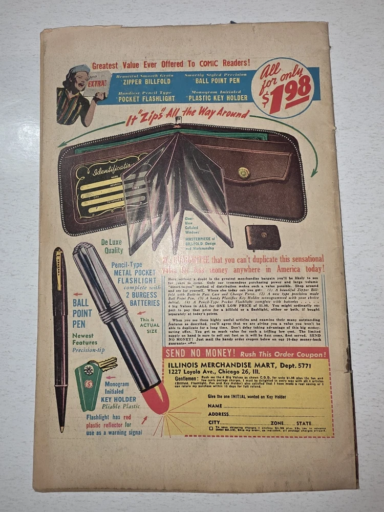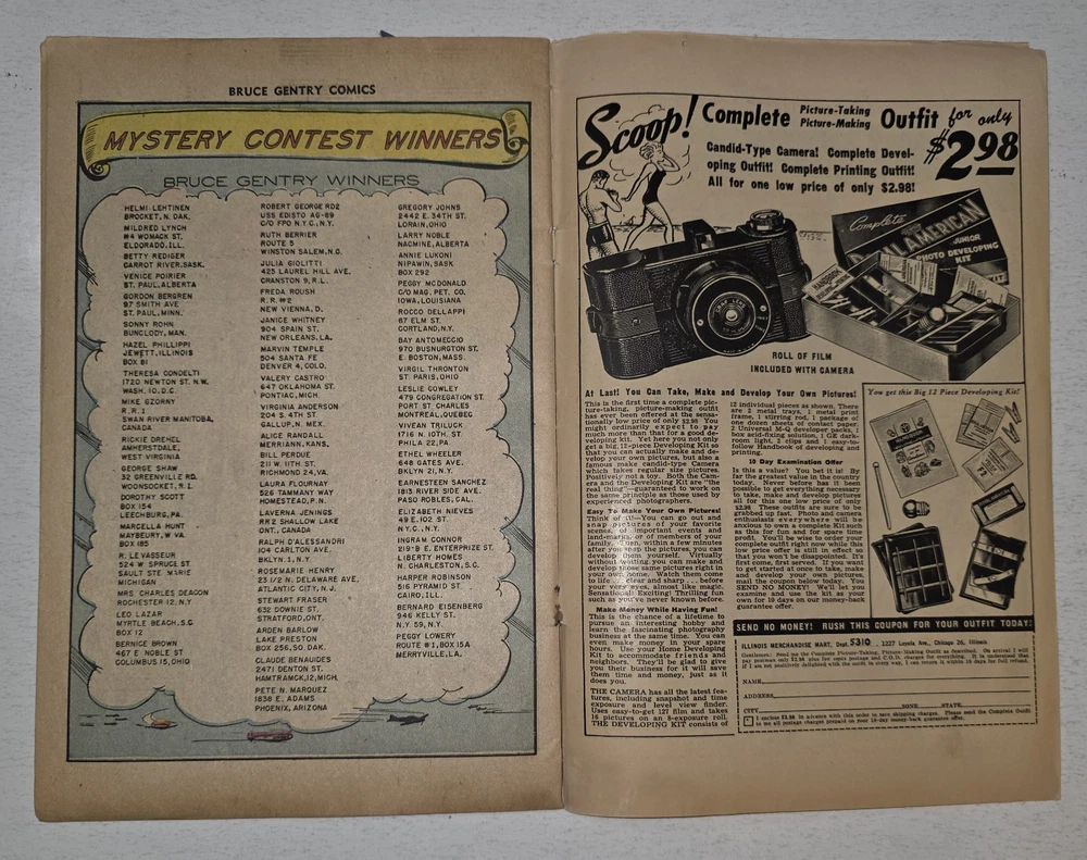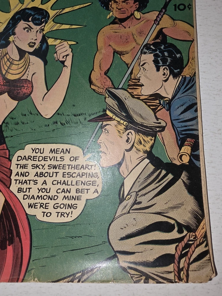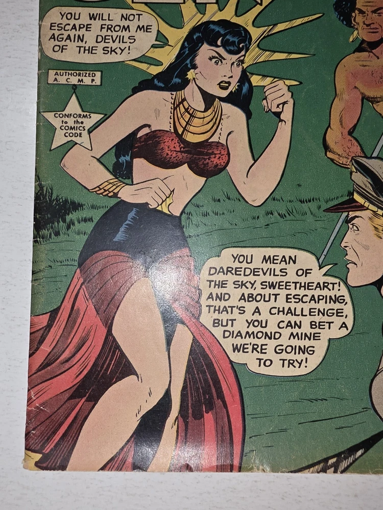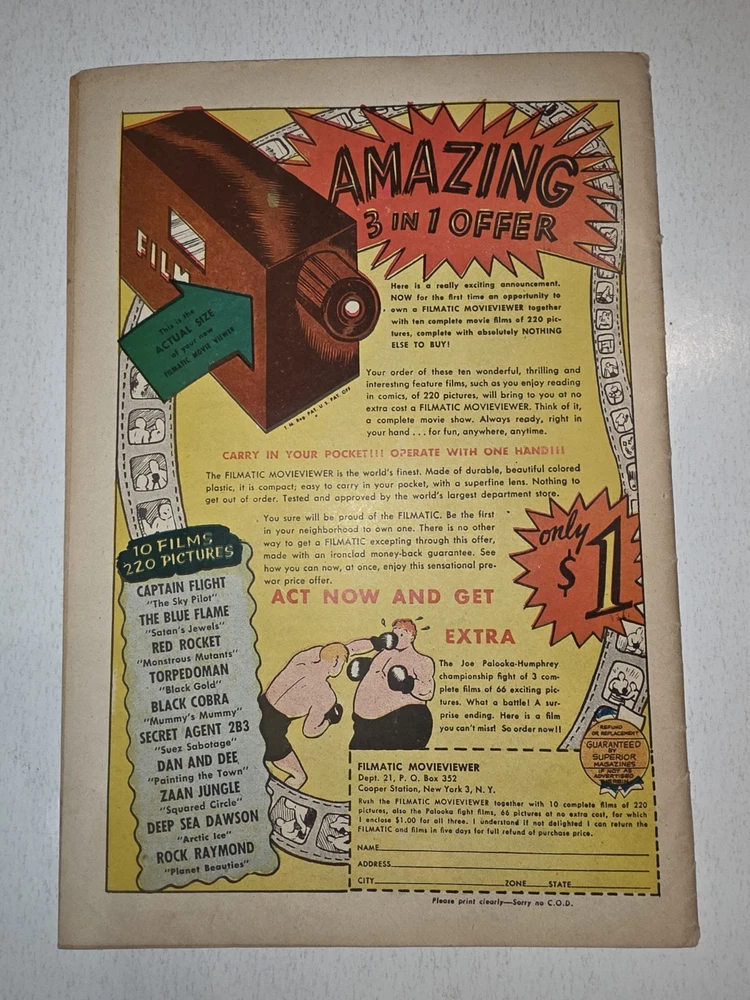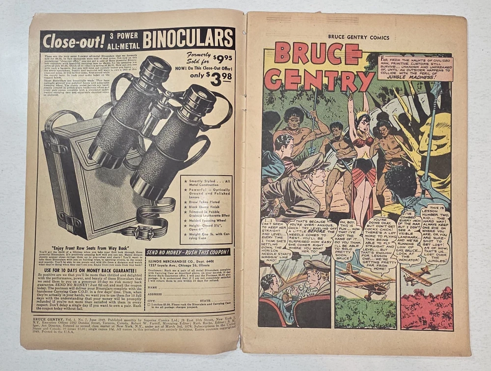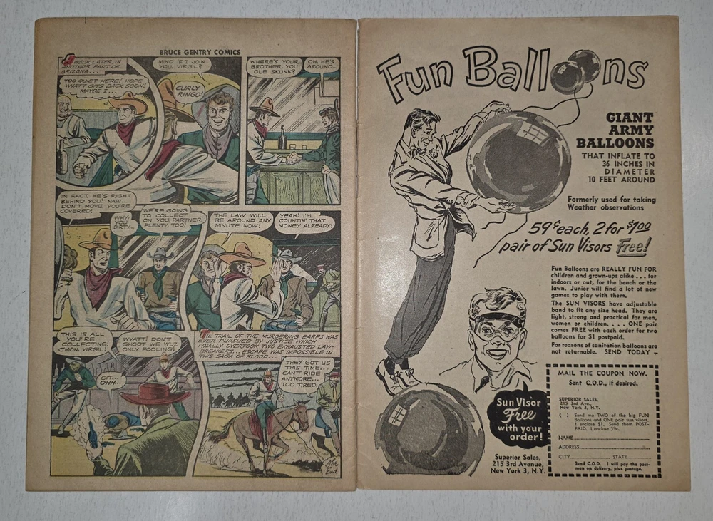 The Bruce Gentry Lot (2) includes two comic book issues from 1949, featuring artwork by Ray Bailey. The GGA (Golden Age) comics are graded VG - G/VG, with issue numbers #3 and #7. Published by Superior Comics, the superhero genre stories are from the US Comics tradition. this lot is a valuable addition to any comic book collection, showcasing the pre-code Golden Age era of comics. #3 G/VG 3" spine split &detached top staple #7 VG - Bagged and boarded - Shipped with Gemini packing to insure no damage during shipping - Usps Priority Check out our 1000s of comics in our store We combine shipping