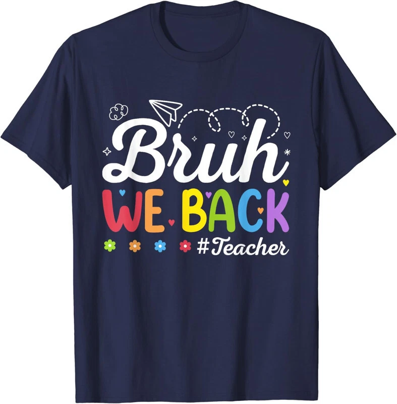 Welcome to Our eBay Shop Fast Shipping Hasslefree Returns Secure Payment Excellent Service Bruh We Back Teacher First Day Of School Funny Product Description All of our t-shirts are brand new and made to order. They are printed in our USA facilities with love and passion. We use various printing methods to ensure you the high quality, long lasting garments you or your loved ones deserve. We carry sizes from Youth Small to Adult-5XL in short sleeve t-shirts (depending on the design). You can refer to "SPECS & SIZING" to get accurate information regarding the sizes of the garments we use. If you have any questions regarding this item or any other item we have for sale, do not hesitate to contact us. We answer all messages within 1 business day. SPECS & SIZING SHIRT CARE TIPS Wash inside out with cold water with similar colors using a gentle cycle. Tumble dry low or hang-dry Avoid using bleach and do not dry clean. PAYMENT We accept payment by any of the following methods: PayPal Please pay as soon as possible after winning an auction, as that will allow us to post your item to you sooner! SHIPPING Your order will be dispatched within 2 business days of receiving payment (Monday-Friday) with a tracking number. In the very unlikely event that your item is lost or damaged during post, then WE are responsible and will issue either a full refund or replacement. RETURNS If you are not 100% satisfied with your purchase, you can return the product and get a full refund or exchange the product for another one, be it similar or not. You can return a product for up to 14 days from the date you purchased it. Any product you return must be in the same condition you received it and in the original packaging. Please keep the receipt. Feedback * Your great positive feedback will be greatly welcomed! * If you have any problem when you receive the item, please contact us first, we'll do our best to resolve the problem!:) Copyright © 2022 | All Rights Reserved