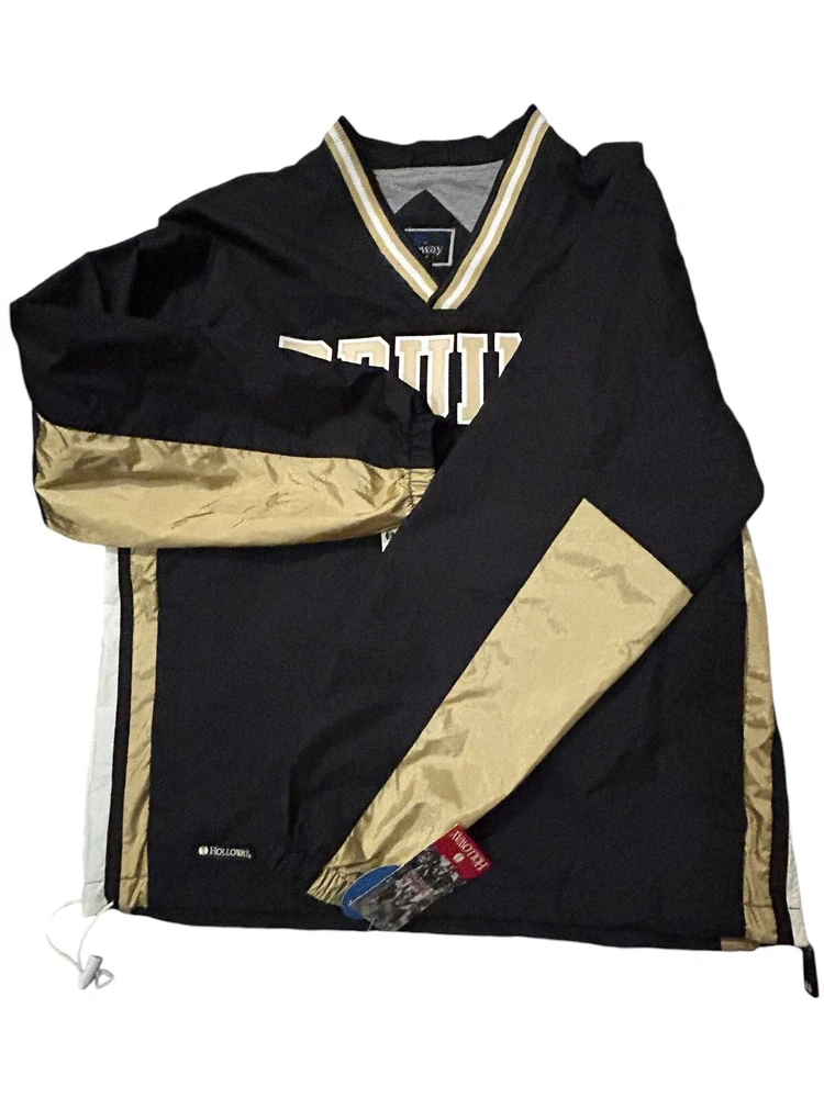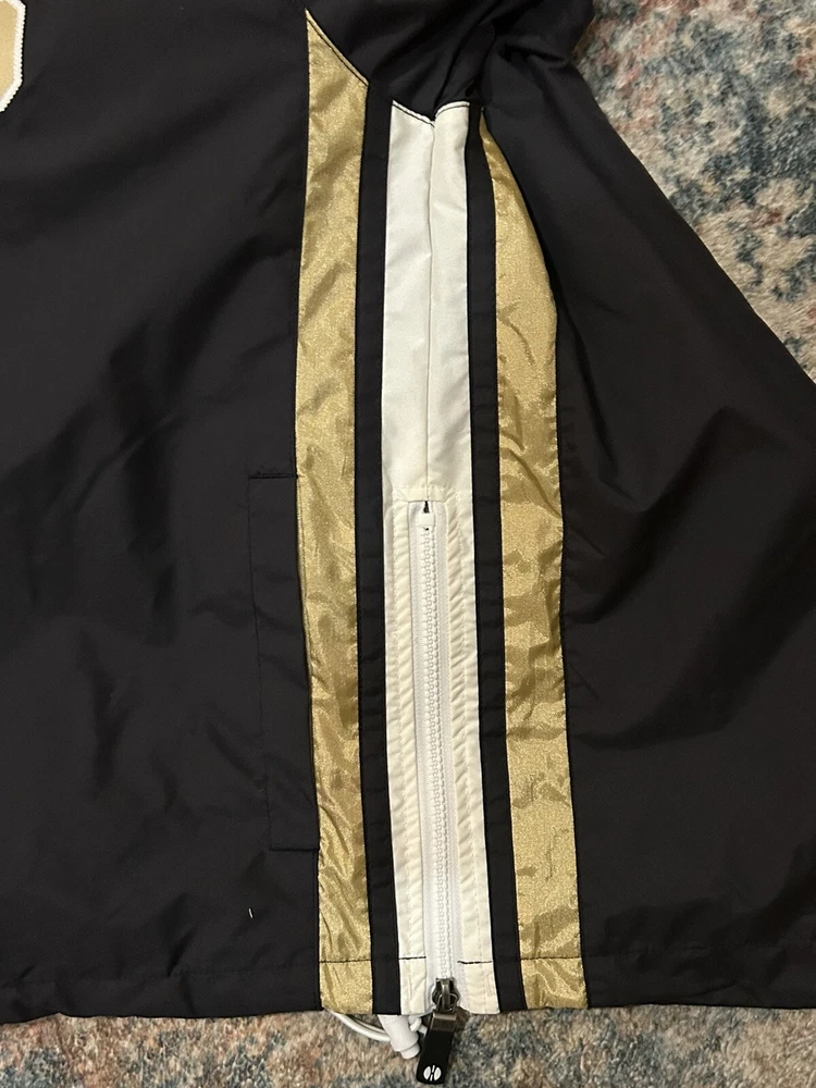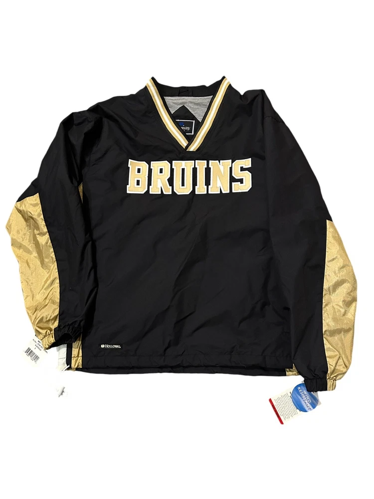 Bruins Pop Over Jacket/Jersey Lightweight Size Small Holloway Sportswear - Brand Side zip on bottom of one side for extra room Toggle pull on the other side 26” length 23” Pit to Pit Wind and water resistant Gold on the sleeves, sides, letters and V neck Show your love for hockey! NWT Excellent condition