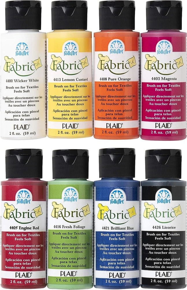 Store New Arrivals Add to Favorite View Feedback Contact Fast deliveries to the customer's home Quality customer service John Make the customers happy! Brush on Fabric Acrylic Paint Beginner Set (2-Ounce), Description CONVENIENT SIZE - This fabric acrylic paint set includes 8 - 2 oz bottles of fabric craft paint. The colors in this paint set include: FolkArt Fabric Wicker White, Licorice, Engine Red, Lemon Custard, Fresh Foliage, Magenta, Brilliant Blue, and Pure Orange SOFT FINISH - When dry, FolkArt Fabric paint is permanent on textiles, once dry, painted fabrics can be machine washed in cold water - making this acrylic paint set the perfect fabric paint for clothes EASY & SMOOTH APPLICATION - Use this fabric paint on a variety of textiles such as cotton, linen, denim, polyester, and so much more SIMPLE CLEAN UP - Clean up is easy with FolkArt's Fabric formula! Simply clean up while wet with soap and water AMERICAN MADE, TRUSTED BRAND - FolkArt Fabric Acrylic Paint is proudly made in the USA Create your own fashion statement with the FolkArt Fabric Paint Set. This versatile 8 piece fabric acrylic paint set is specially formulated to absorb into your fabric making painted pieces soft and wearable. This unique paint set flexes with the fabric without flaking and is not stiff when dry. Each color of this highly pigmented acrylic paint set is permanent on a variety of fabric materials and even looks great on dark fabrics. Once dry, your beautifully painted fabrics can be machine washed in cold water. Add some flair to your fashion with the FolkArt Fabric Paint Set. Item model number FAB8SET Country of Origin USA Coverage Full Coverage Unit Count 16.0 Fluid Ounces Item Volume 2 Fluid Ounces Age Range (Description) General use product Package Information Bottle Item Form Liquid Specific Uses For Product Interior/Exterior Paint Type Acrylic Is Discontinued By Manufacturer No Indoor/Outdoor Usage Outdoor, Indoor Included Components Paint Water Resistance Level Water Resistant Item Weight 1 pounds Surface Recommendation Fabric Special Feature Non Toxic Color Code 8 Assorted Colors Color 8 Assorted Colors Finish Type Fabric Global Trade Identification Number 00028995319761 Is Waterproof False Model Name FAB8SET Product Dimensions 6 x 5 x 5 inches Size 2 Fl Oz (Pack of 8) ABOUT US We offer the best prices around on high quality products. Our E-store includes media such as books, movies, music and games while offering electronics, toys, sporting apparel, clothing, tools, general home, garden items and more. SHIPPING We are always working hard to ensure your package arrives as soon as possible. Please understand that some factors like weather, high postal traffic, and the performance of shipping companies are outside of our control. We offer free shipping to the lower 48 states and ship within 2 business days of payment, usually sooner. We do not accept P.O. Boxes. Please provide a physical address. For shipping outside of the continental USA, we only use eBay's Global Shipping Program. The item is shipped to KY and then sent to the rest of the world. International customers are responsible for all duties and taxes. Continue to 'check out' to calculate costs for shipping the item to your country. Messages regarding eBay's Global Shipping Program MUST be directed at eBay EXCLUSIVELY. RETURNS We offer a 30-Day Return Policy on items in which you are not completely satisfied with. You have the option of a full-refund or an exchange of the item. No returns are available on items shipped outside of the USA PAYMENT We accept PayPal. CONTACT US This page content is yet to come Please ad us to your favorite seller and visit again later Thank You CUSTOMER SATISFACTION We try our very best to make sure every customer is completely satisfied. If there's a problem, message us! We're happy to help. WE ACCEPT