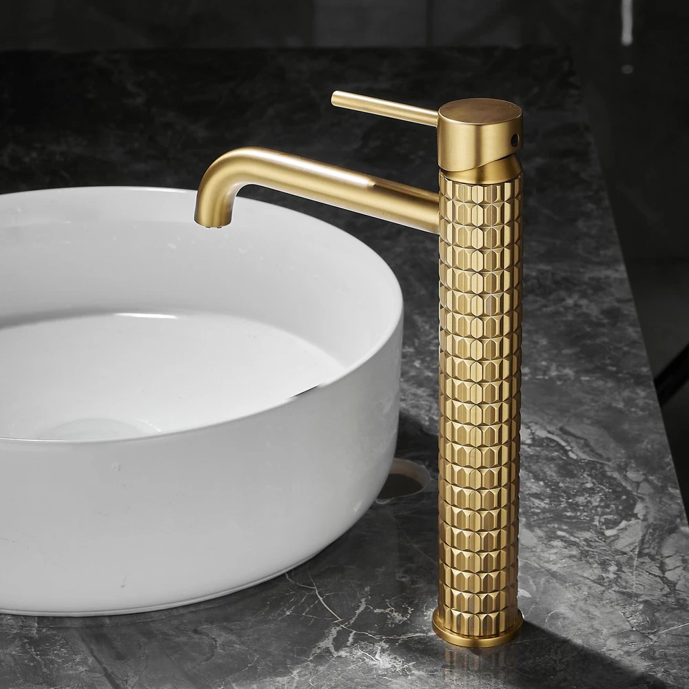 Brushed Gold Bathroom Faucet - Vessel Sink Faucet 1 Hole Single Handle - Brass Bathroom Vanity Faucet with Pop Up Drain 【Durable Material】 bathroom faucet is made of Solid Brass, which resists rust and corrosion in humid bathrooms, ensuring good durability. 【Elegant Style】 Brushed gold surface is waterproof and long-lasting, and will not leave fingerprints. Add a touch of elegance to your bathroom with this beautiful vessel sink faucet. 【Water Saving】 Vessel sink faucet comes with a high-quality ceramic cartridges with superior sealing performance and high tensile strength, which can be tested 500,000 times without losing water. 【Installation&Accessories】 US Standard water supply lines, pop up drain (without overflow) and brass hose fitting are included in the packaging. Single hole bathroom faucet is suitable for bathroom sinks, RVs, commercial bathrooms, etc. 【After-sales】All our bathroom sink faucets enjoy lifetime warranty services. If you have any quality problems, we provide replacement and return services.