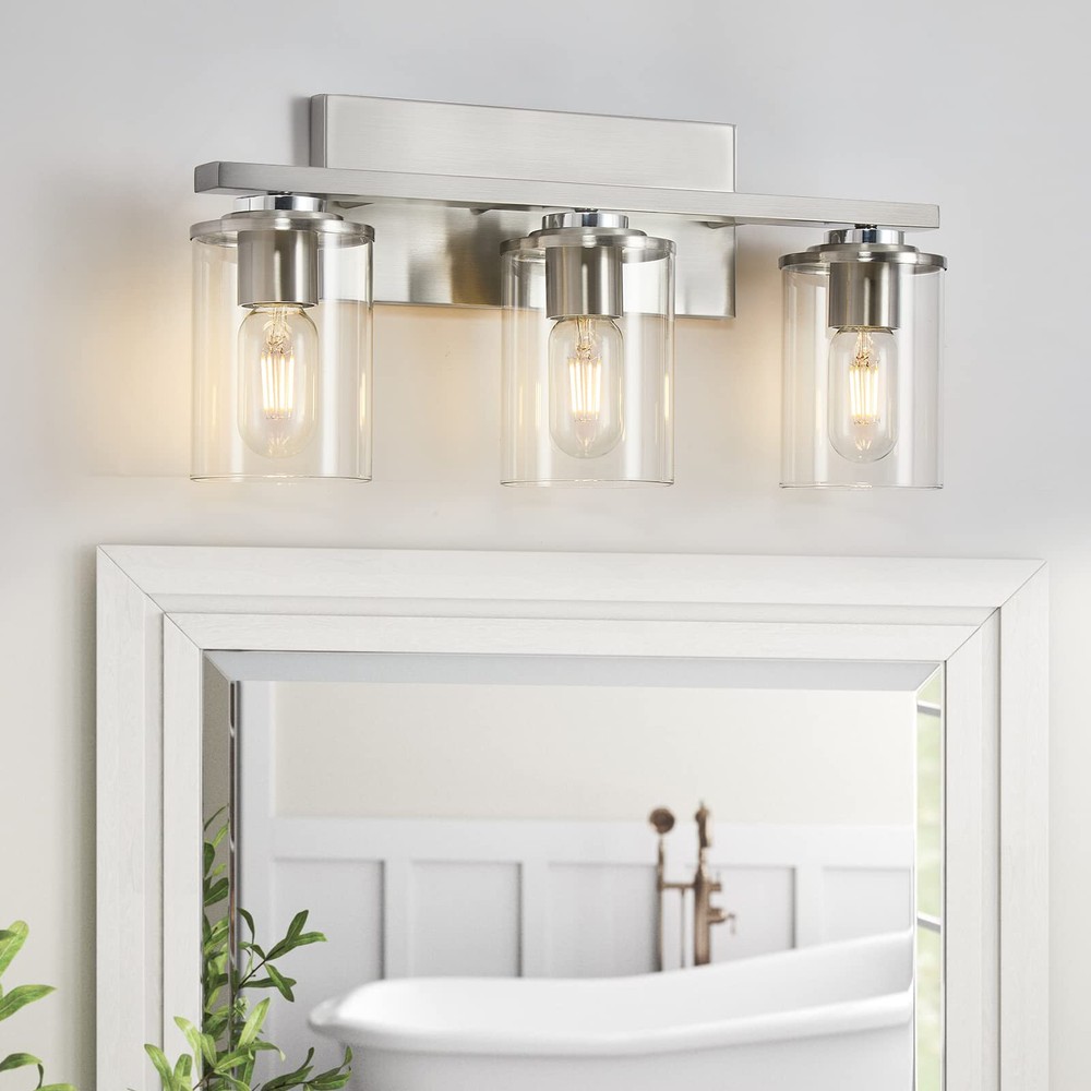Brushed Nickel 3-Light Bathroom Vanity Wall Sconce Fixture with Metal Finish