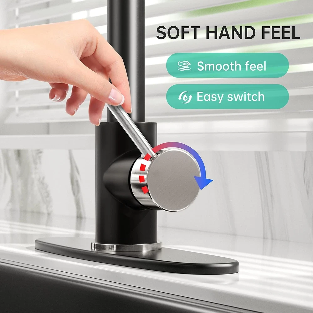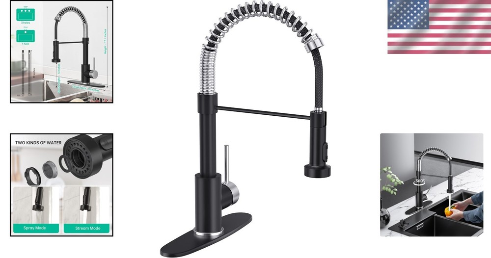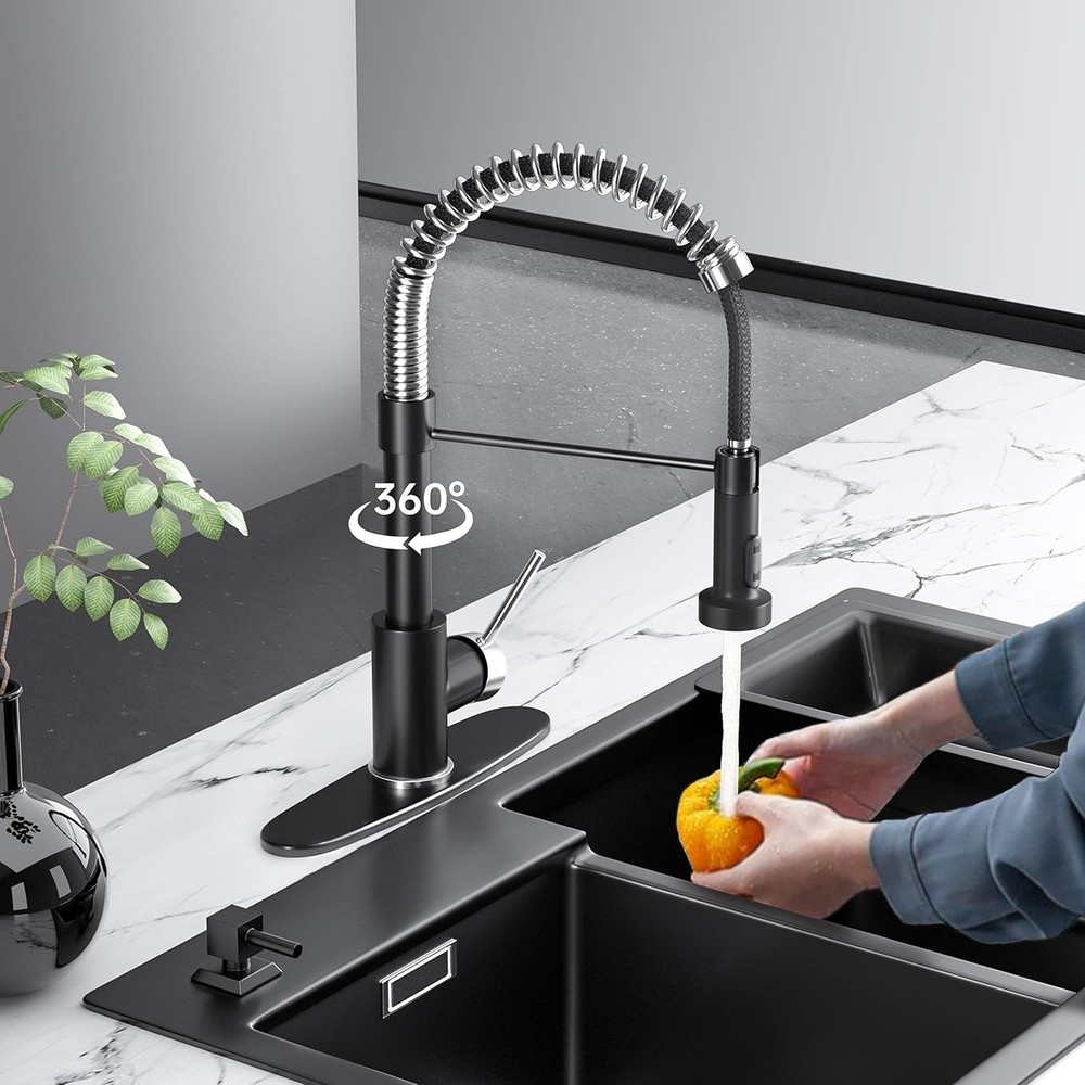 Kitchen Faucet with Pull Down Sprayer Brushed Nickel Black Solid Brass 1-3 Hole ‹ › ‹ › ‹ › ‹ › ‹ › ‹ › ‹ › ‹ › Kitchen Faucet with Pull Down Sprayer Brushed Nickel Black Solid Brass Product Details: Material: Crafted from brass and 304 stainless steel spring, our faucet features a durable internal ceramic valve core that prevents water leakage. Certified with CEC certification for your peace of mind. Easy Installation: Includes everything you need for a swift and hassle-free setup. Compatible with both 1-hole and 3-hole basins, our faucet effortlessly attaches to countertops. Size: Standing tall at 17 inches, with a width of 9.84 inches and a water outlet height of 4.13 inches. Comes with a 31.5-inch long 3/8 water supply hose. Delivers water at an impressive rate of 1.75 gallons per minute. Unique Design: Our single-handle spring sink faucet features dual-function nozzles that allow for easy switching between sprayers. The elegant 304 stainless steel spring not only enhances the aesthetic appeal but is corrosion-resistant and simple to clean. Why Choose This Kitchen Faucet? This stylish yet functional faucet brings a touch of modern elegance to your kitchen space. The sophisticated brushed nickel black finish effortlessly complements various decor styles while providing unmatched durability and reliability. Enjoy the convenience of a pull-down sprayer that adapts to all your culinary needs, whether you're rinsing fresh produce or washing larger pots. Experience the perfect fusion of modern design and practical functionality—elevate your kitchen with our Kitchen Faucet with Pull Down Sprayer today! Customer Support: If you have any questions or require assistance regarding our kitchen sink faucets, our dedicated customer service team is available to help within 12 hours. Your satisfaction is our priority! Shipping Free & Fast Shipping - We offer free shipping to most of the USA with a normal delivery time of 3-7 days. However, due to the current situation, additional delivery time (up to 3 weeks) may be required for some items. Alternative Carriers - We may use alternative carriers (e.g. USPS, FedEx, UPS, etc.) to ensure your package arrives safely and on time. Due to the use of multiple carriers, we are unable to provide a tracking number automatically. Handling Time - Orders are processed and shipped within 1-2 business days of receiving cleared payment. Shipping Restrictions - Shipping to Alaska, Hawaii, Puerto Rico, Guam, and other US territories may incur shipping charges or delivery restrictions. Please contact us before ordering, or your order can be refunded/cancelled. State Restrictions - There may be restrictions based on your state of purchase. For example, certain items may not be shipped to California due to state regulations. Contact for Tracking Updates - If you require tracking updates or have any concerns about the delivery of your order, please feel free to contact us, and we will be happy to assist you. Return 30-Day Hassle-Free Returns - We want you to be completely satisfied with your purchase. If you are not, you can return the item within 30 days of receiving it for a full refund or exchange. Easy Return Process - To start a return, simply contact us and we will provide you with a prepaid return shipping label and detailed instructions. Restocking Fee - There are no restocking fees for returns. However, the buyer is responsible for return shipping costs if the return is not due to a seller's error. Refund Processing Time - Refunds will be processed within 5 business days of receiving the returned item in its condition. Payment We accept all major credit cards, PayPal, and Apple Pay for your convenience. Your payment information is secure and encrypted to ensure a safe and seamless transaction. Please complete your payment within 3 days of purchase to avoid any delays in shipping. Feedback Your feedback is extremely important to us. We strive to provide the best products and customer service possible. If you are satisfied with your purchase, please take a moment to leave us a positive review. If you have any concerns or issues with your order, please contact us before leaving negative feedback. We are committed to resolving any problems and ensuring your satisfaction. Contact Us If you have any questions or concerns, please feel free to out to our customer support team. You can contact us through the eBay messaging system. We are available Monday to Friday, 9:00 am to 5:00 pm EST, and we will do our best to respond to your inquiry within 24 hours. Buy it now and enjoy a pleasant shopping experience! Item Weight: Not specified Unit Quantity: 1 Material: Brass,304 Stainless Steel Suitable For: Kitchen Sink Features: Pull-Out,Pull Down Sprayer,Dual Function Nozzles,Corrosion Resistant,Easy to Clean Room: Kitchen Items Included: Sprayer,Handle Type: Kitchen Faucet Finish: Black Number of Faucet Holes: 1 Color: Black Number of Faucet Handles: 1 Handle Type: Lever Faucet Mounting Type: Deck Shape: Pull-Down Installation: Deck Mounted Faucet Hole Spacing: 10 in Style: Modern Unit Type: Unit