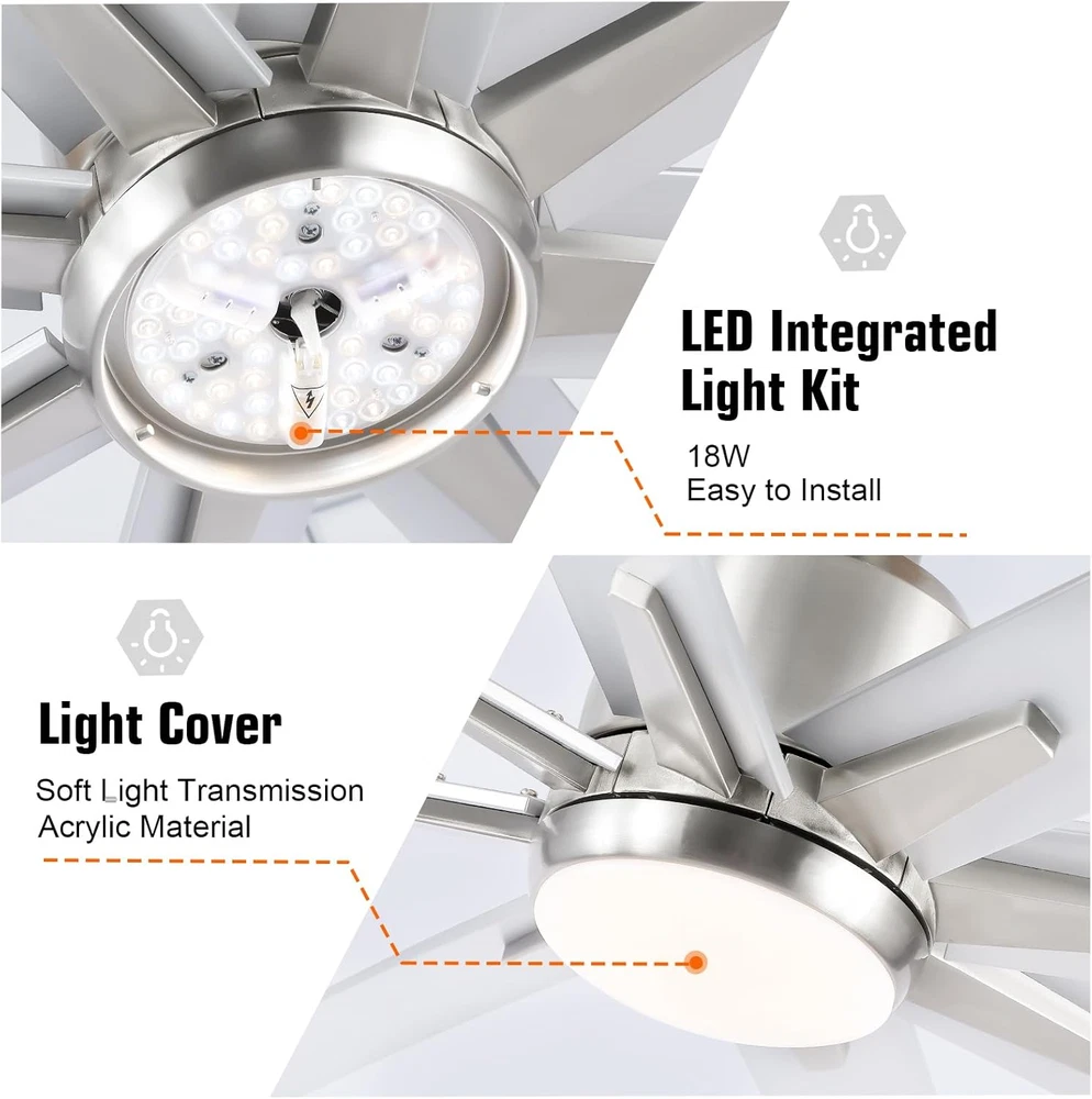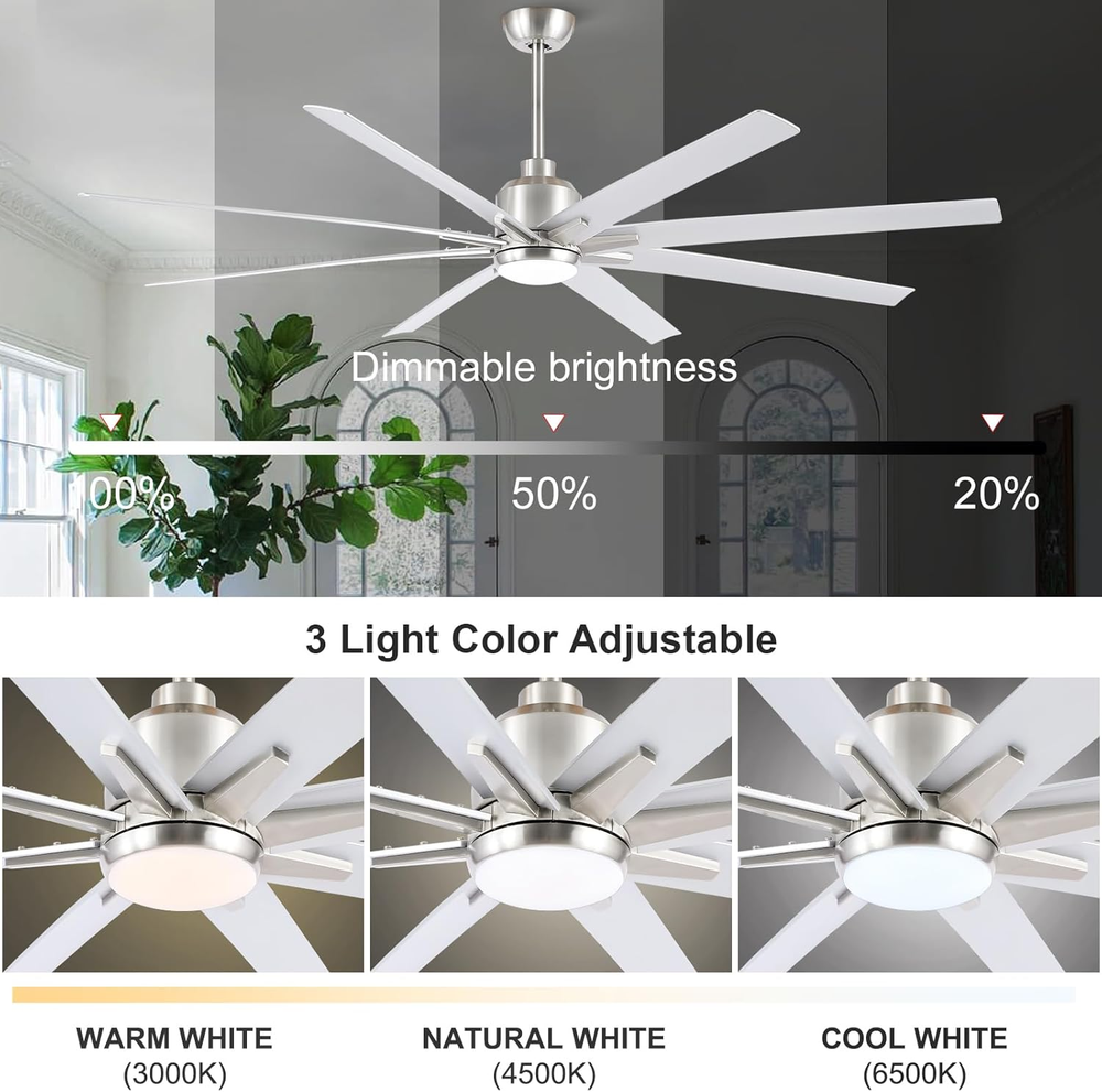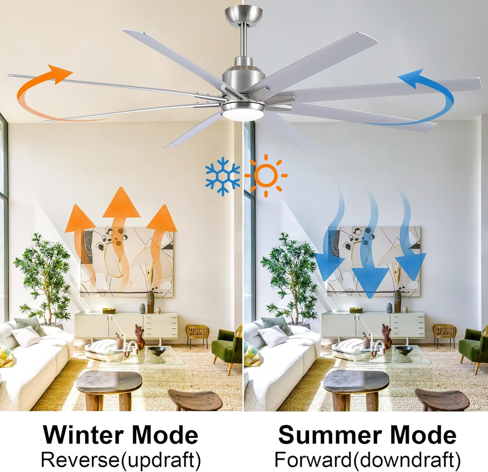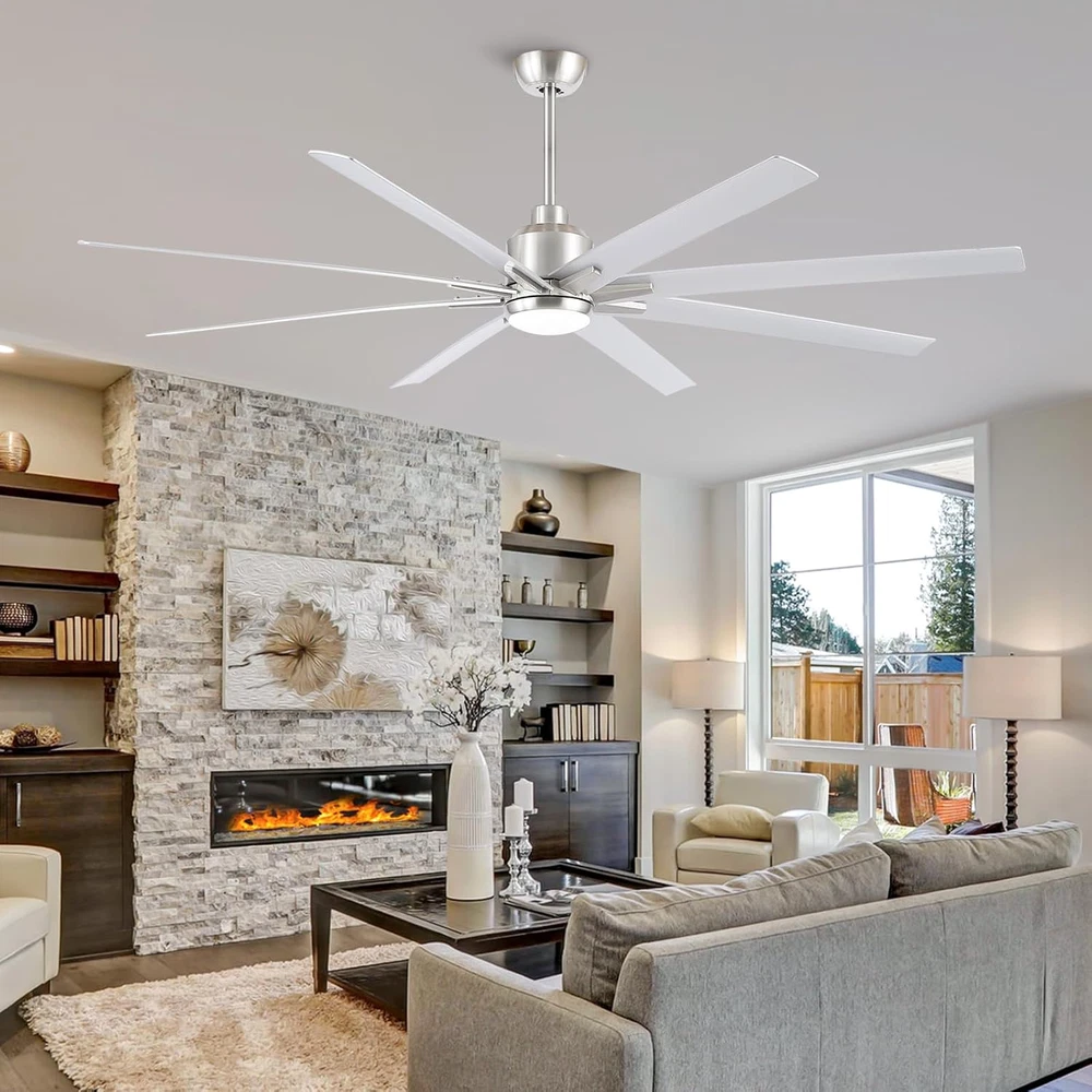 This ceiling fan is a game-changer! Super quiet with its DC motor and the remote makes adjusting speed and lights a breeze. The brushed nickel finish looks sleek, and the reversible blades are a nice touch. Perfect for large rooms—super strong airflow without being loud. Installation was straightforward, and it adds a modern industrial vibe to any space. Definitely worth it!