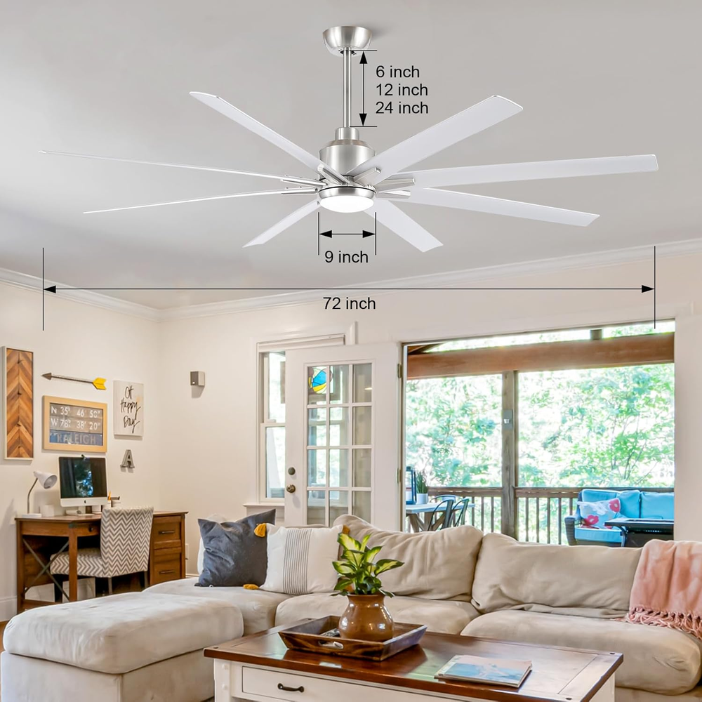 Store New Arrivals Add to Favorite View Feedback Contact Ceiling Fan with Lights Remote Control, Brushed Nickel Large Ceiling Fan with Reversible Blades Industrial Ceiling Fan for Living Room Office Covered Patio, DC Silent Motor (Sand Nickel, 72-Inch) Description Item model number 1154 Main Power Connector Type Type A Number of Power Levels 6 Power Source dc Color Sand nickel Country of Origin China Product Dimensions 62"D x 62"W x 18.9"H Control Method Remote Room Type Bedroom, Playroom, Dining Room Is Cordless? No Mounting Type Ceiling Mount Included Components Light Kit, Remote, Cord Item Weight 31.8 pounds Efficiency High Airflow, Energy Efficient Size 72-inch Model Name ceiling fan Recommended Uses For Product Cooling Electric fan design Ceiling Fan Special Feature Remote Controlled, Quiet Operation, LED Light, Heavy Duty Finish Type Brushed Large ceiling fan:Large 72 inch industrial ceiling fan for large space, silicon steel DC motor with 8 sturdy ABS fan blades provide strong wind power. The brushed nickel modern minimalist wind ceiling fan is suitable for stores, barns, offices, restaurants and other commercial places. It can also be used in large houses, or other large places Outdoor ceiling fan:Equipped with 6-speed remote control and reversible ceiling fan Compared to AC motors, DC motors are more energy efficient and work with less noise. In the summer, the forward mode allows air to flow downward and large industrial ceiling fans have a good airflow of over 6900CFM to keep you cool. In the winter, the reverse mode allows air to flow upward so that the warm air produced by the room's heating equipment is evenly distributed throughout the room Dimmable LED:The ceiling fan uses an 18W LED light source.The brightness of the light can be adjusted from 0 to 100 according to the environment. Compared with ordinary light source, LED light source is more energy-saving and longer life. There are 3 color temperatures to choose from (3000K warm yellow light/4000K natural light/6500K cool white light), with adjustable brightness(20%-100%).You can use different color temperatures and brightness for parties, work or reading Convenient remote control:Three color temperature, forward and reverse rotation, fan timing, 6-speed wind. All functions can be controlled by remote control, very convenient.Fan or light can work simultaneously or separately. Comes with a mounting bracket for the remote control to be mounted on the wall Easy to install:The overall design is simple and practical, and most of the complex installation procedures are already completed with detailed installation instructions. Tip:You can watch the video in the image module section at the top of the page.In addition to the product demonstration video, we also provide an installation video that takes only 30 minutes to complete the installation Product Description ABOUT US We offer the best prices around on high quality products. Our E-store includes media such as books, movies, music and games while offering electronics, toys, sporting apparel, clothing, tools, general home, garden items and more. SHIPPING We are always working hard to ensure your package arrives as soon as possible. Please understand that some factors like weather, high postal traffic, and the performance of shipping companies are outside of our control. We offer free shipping to the lower 48 states and ship within 2 business days of payment, usually sooner. We do not accept P.O. Boxes. Please provide a physical address. For shipping outside of the continental USA, we only use eBay's Global Shipping Program.The item is shipped to KY and then sent to the rest of the world. International customers are responsible for all duties and taxes. Continue to check out in order to calculate costs for shipping the item to your country. Messages regarding eBay's Global Shipping Program MUST be directed at eBay EXCLUSIVELY. RETURNS We offer a 30-Day Return Policy on items which you are not completely satisfied with. You have the option for a full-refund or an exchange of the item. No returns are available on items shipped outside of the USA. PAYMENT We accept PayPal. CONTACT US This page content is yet to come Please ad us to your favorite seller and visit again later Thank You CUSTOMER SATISFACTION We try our very best to make sure every customer is completely satisfied. If there's a problem, message us! We're happy to help. WE ACCEPT Copyright © 2021 AutoDS. | All Rights Reserved