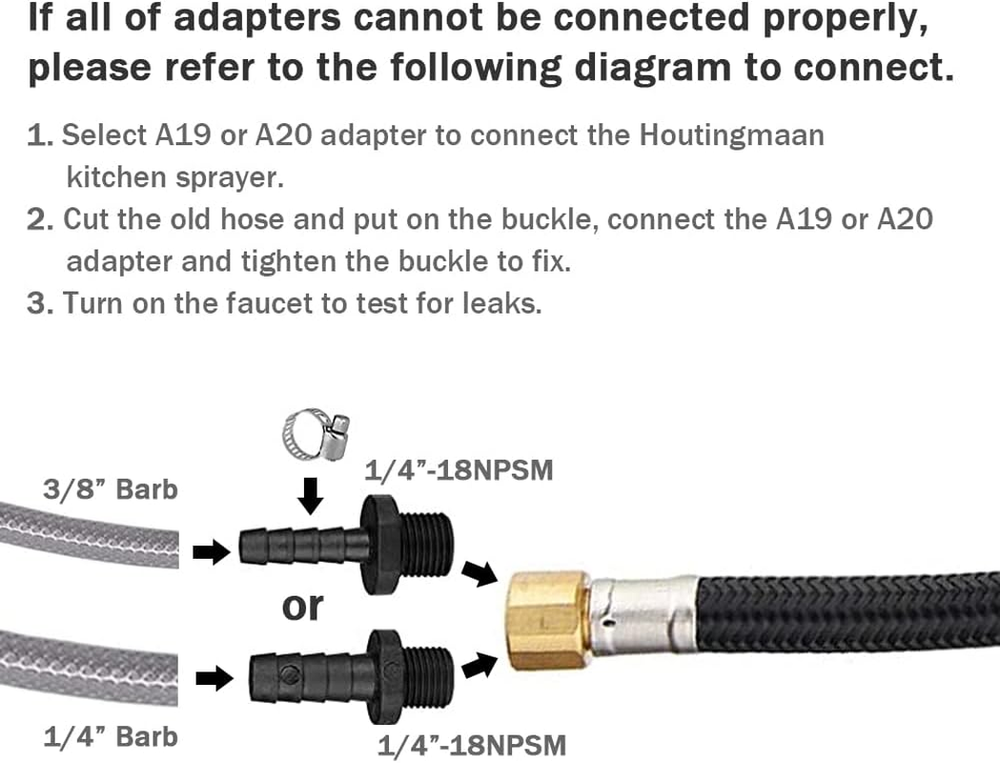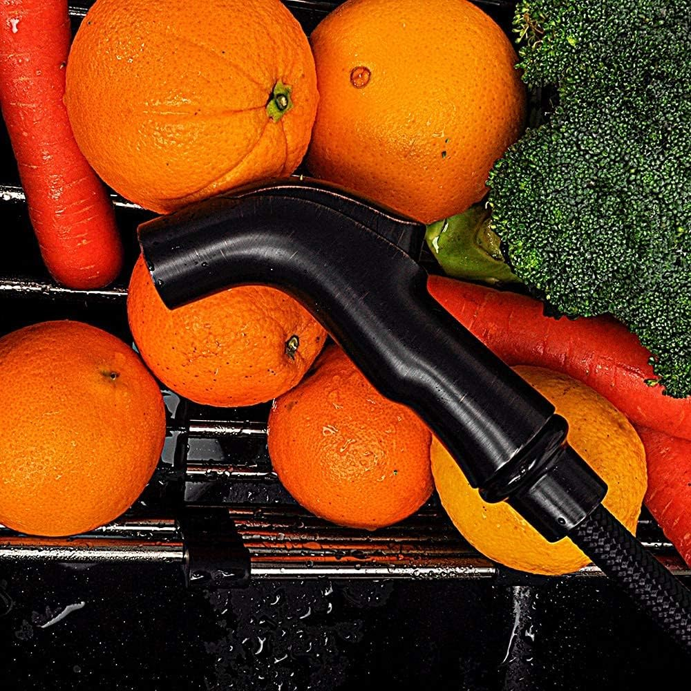 ✅DURABLE QUALITY OF KITCHEN SPRAYER - Durable ABS plastic construction with scratch and stain resistant protection for kitchen sprayer heads and holders, passed the salt spray test. ✅EASY TO USE - Thumb applied trigger action is easy to wash greasy dishes and provides high pressure directional power spraying. Easy-to-clean spray head that prevents mineral buildup. ✅SURFACE FINISH - Engineering grade plastic(ABS) constructed, ensuring quality and longevity. Smoothfinishes resist scratches, corrosion and tarnish. ✅Great Customer Service- We will reply within 8 hours after receiving your email and offer free 30 days returns and 1 years free maintenance. Product Description 1 SINK SPRAYER WITH HOSE 2 EASY TO USE Kitchen Sprayer Head without Hose/Holder Color Brushed Nickel Color Chrome Color Brushed Nickel High Pressure Sprayer Head The high-pressure sprayer head is easy to clean hard-to-reach spots and smudges. High Pressure Sprayer Head The high-pressure sprayer head is easy to clean hard-to-reach spots and smudges. High Pressure Sprayer Head The high-pressure sprayer head is easy to clean hard-to-reach spots and smudges.