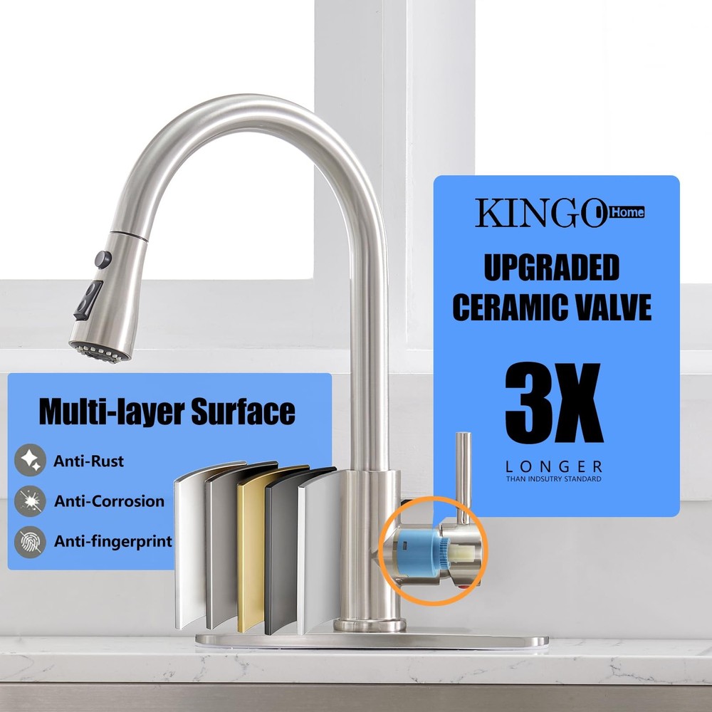 Brushed Nickel Pull-Down Sprayer Kitchen Faucet by KINGO