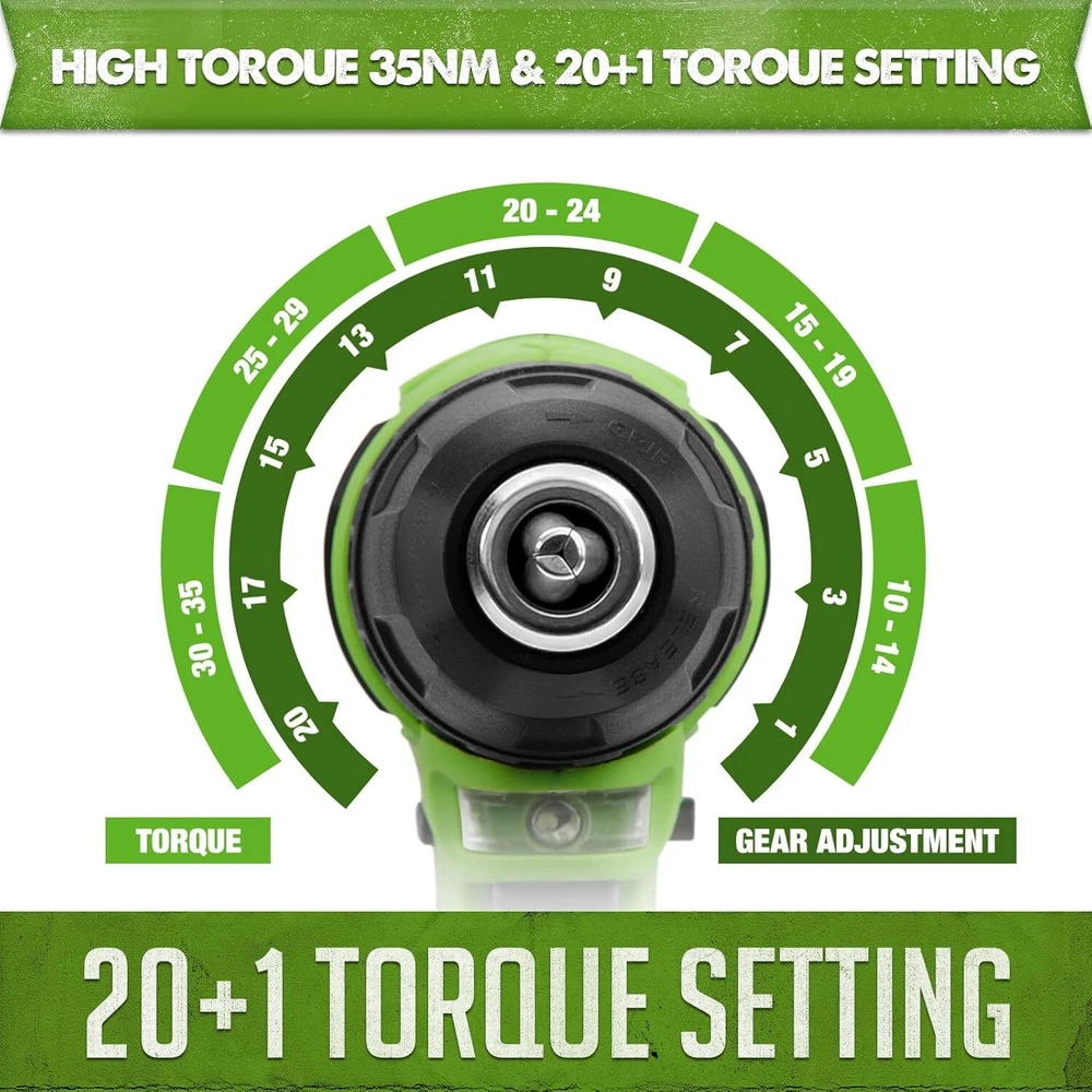 Product Description 18V Cordless Drill, Brushless Power Drill With 2Pcs Battery And Charger, 3/8”Keyless Chuck, 2 Variable Speed, 20+1 Torque Setting Electric Drill, Power Tools Kit For Man/Women Home Use Durable And Efficient Brushless Motor: The Brushless Drill Compared With Ordinary Power Drill Cordless, Brushless Drill Can Improve Work Efficiency By 30% And Prolong Machine Life By 50%. The Brushless Motor Can Reduce Friction And Heat During Use, Consuming Less Energy. And It Can Greatly Reduce The Noise And Loss Of The Electric Drill. Perfect For Professional And Home Use. Ensuring Your Work Is More Efficient And Convenient. 20+1 Position Clutch With 35Nm Max Torque: Delivers 35Nm Of Max Torque. Power Drill'S Multi-Position Clutch Will Deliver Precise Power Where You Need It. 20+1 Torque Settings And 2-Speed( 0-350 & 0-1350 Rpm ) Of Power Drill Can Provide More Precise Torque Or Speed Adjustment As Required, Which Helps To Prevent Sinking A Screw Too Deep, Stripping Out The Head Of A Screw Or Even Breaking A Screw Shaft. 2Pcs Powerful Battery: This Cordless Drill Came With 2*1500Mah Li-Ion Batteries And 1Hour Fast Charger That Can Use For 2-3 Hours After Each Charge. The Additional Battery That Makes The Cordless Electric Drill Screwdriver Always Ready To Use Without Restriction. It'S Also A Good Choice For The Jobs Around The House And Garden. Led Light & Ergonomically Design: Our Power Drill Is Easy To Operate And Carry. Non-Slip Rubber Sleeve Handle Design, Easy To Operate With One Hand,Ergonomically Designed Rubber-Covered Handle Provides Maximum Comfort For Easy One-Handed Operation,Minimizes Fatigue In Daily Work, Includes Bright Led Lights To Improve Visibility So That Operators Can Work Anywhere, Even In Dark Corners And Dim Places. Package Include-You Will Get: 1 X Cordless Power Drill, 2 X 1.5 Ah Battery, 1 X Fast Charger, 6 X Hss Twist Drill Bits,9 X Socket, 10 X Screwdriver Bits, 1 X Socket Adapter,1 X Flexible Shaft, 1 X Screwdriver Bit Adapter,1 X User Manual,1 X Tool Box. Suitable For Home Modification And Various Diy Projects. It Can Also Be Given As A Gift To Family And Friends. About Us We are a reputable seller with many years of experience selling on eBay. Our goal is to provide high-quality products and excellent customer service. Shipping Items will be shipped within 1-3 business days when we received payment. (Orders are not processed on weekends & holidays) Tracking information will be sent once item is shipped. Delivery time depends on destination and other factors Item is shipped to ebay address. Leaving correct address can minimize delay. For international shipping and shipping to Guam, Hawaii and Alaska, Please contact us before placing the order. International buyers please note: Import duties, taxes and charges are not included in the item price or shipping charges. These charges are buyer’s responsibility. We will try our best to reduce the risk of the custom duties. Local pick-up is unavailable at the moment. Contact Us We reply any email messages within 1 business / working days(off-duty at weekend). If you do not get a response from us, then please check your junk or spam mailbox. Our Business hours: Mon-Fri 9:00-18:00, UTC/GMT +8 hours. Please contact us either by clicking "contact seller" in the "purchase history" section or simply click "ask a question" at the bottom of this page. If you are unsatisfied with our item or service, please contact us before leaving any feedback. We are committed to resolve all issues in a friendly and satisfactory manner.