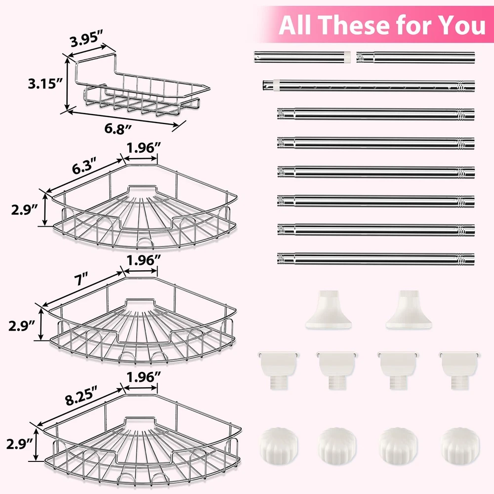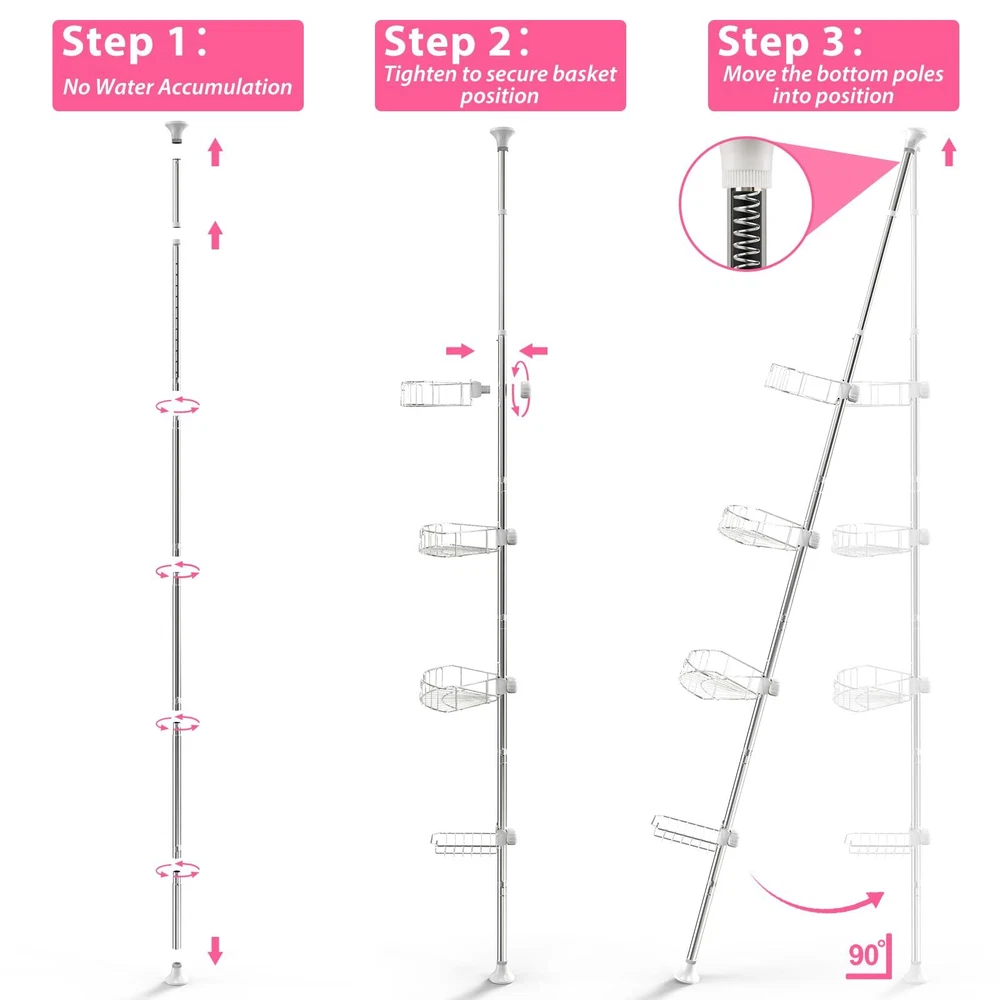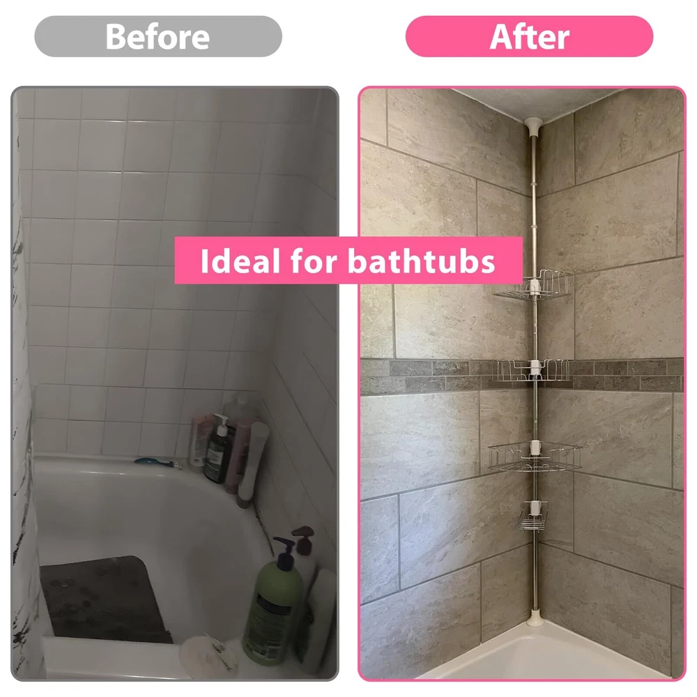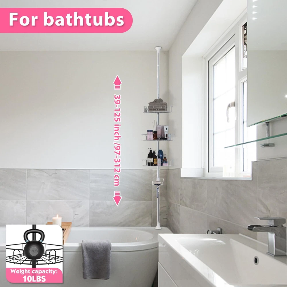 BsBsBest Shower Organizer Caddy 39-125" Stainless Steel Shower Shelves Rack Adjustable Organization And Storage Head Holder for Inside Shower Bathroom Bathtub Caddy Rustproof Tension Pole Silver 【Space Saving Design】The shower caddy corner's space saving design can effectively store your daily bathroom toiletries. No more clutter in the bathroom! 【Adjustable Length】 The height of the shower caddy corner's rod is adjustable between 39-125 inches, suitable for most standard bathroom spaces; the height of the basket is adjustable to accommodate taller bottles. Suitable for a wide range of environments, not suitable for sagging or sloping ceilings. 【Easy Installation】The shower organizer is very easy to assemble, mainly consists of multiple sections of short rods rotating and splicing. No drilling, no tools, no damage to the shower wall or ceiling. The shower shelves can be disassembled and assembled at any time. We provide video explanation and instructions. One person can finish the assembly in a few minutes. 【Rustproof & Stable & Durable】The shower caddy's rods and baskets are made with double-layer rustproof treatment, and the mesh storage shelves can keep the items dry and clean, and won't rust. The rods are 1.1 inches in diameter and 0.8mm thick, very sturdy and will not deform. Round rubber end caps provide extra stability. 【Worry-free After-sales Service】 BsBsBest provides lifetime after-sales service for the product. Any product quality issues will be handled positively by us. Please feel free to contact us anytime. SHIPPING Domestic Buyers - We have confidence in our products, but if you are not fully satisfied please contact us within 30 days of purchase and you will get full refund. - We ship within 3 business days of payment, usually sooner - We offer FREE shipping on all orders! - We only ship to the lower 48 states, no APO/FPO addresses or PO Boxes allowed International buyers – please note: Import duties, taxes, and charges aren't included in the item price or postage cost. These charges are the buyer's responsibility. - Please check with your country's customs office to determine what these additional costs will be prior to bidding or buying. * Order Cancellation Policy ** You can return a product for up to 30 days from the date you purchased it. 1. The seller reserves the right to cancel the special case only due to eBay cancellation fee. 2. The decision of seller is the final. 3. The seller will respond to the cancellation request within 2 business days. Please wait for the result of cancellation. 4. In case the cancellation is not completed by some reasons, the buyer can follow the options below to get the refund. 4.1 The buyer can reject the item when it arrives. 4.2 The buyer can send the item back to the seller within 30 days If the buyer receives item (USA Shipment ONLY). The seller will provide the FREE return label to the buyer when the buyer opens " Return Item" case on eBay by using the reason as "Change my mind" ONLY. 5. When buyer has placed the order. The order will be processed and completed by automatic warehouse system within 5 minutes. In case that buyer sends the cancellation request after 5 minutes of placing the order, the request will be rejected. **Sending direct message to cancel the order is not allowed for every case.* Return Policy For the return case - If buyer would like to return the items for refund or replacement, please CONTACT SELLER to receive the free return label from seller. The refund or replacement will be processed with the tracking number of return label which is provided by seller only. The other ways of return which are not approved by seller will not be processed for the refund or replacement.