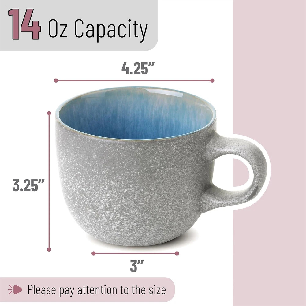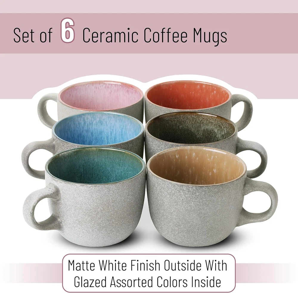 Btat- Coffee Mugs Set of 6, 14 Oz, Coffee Cups Ceramic, Ceramic Coffee Cups, Mug