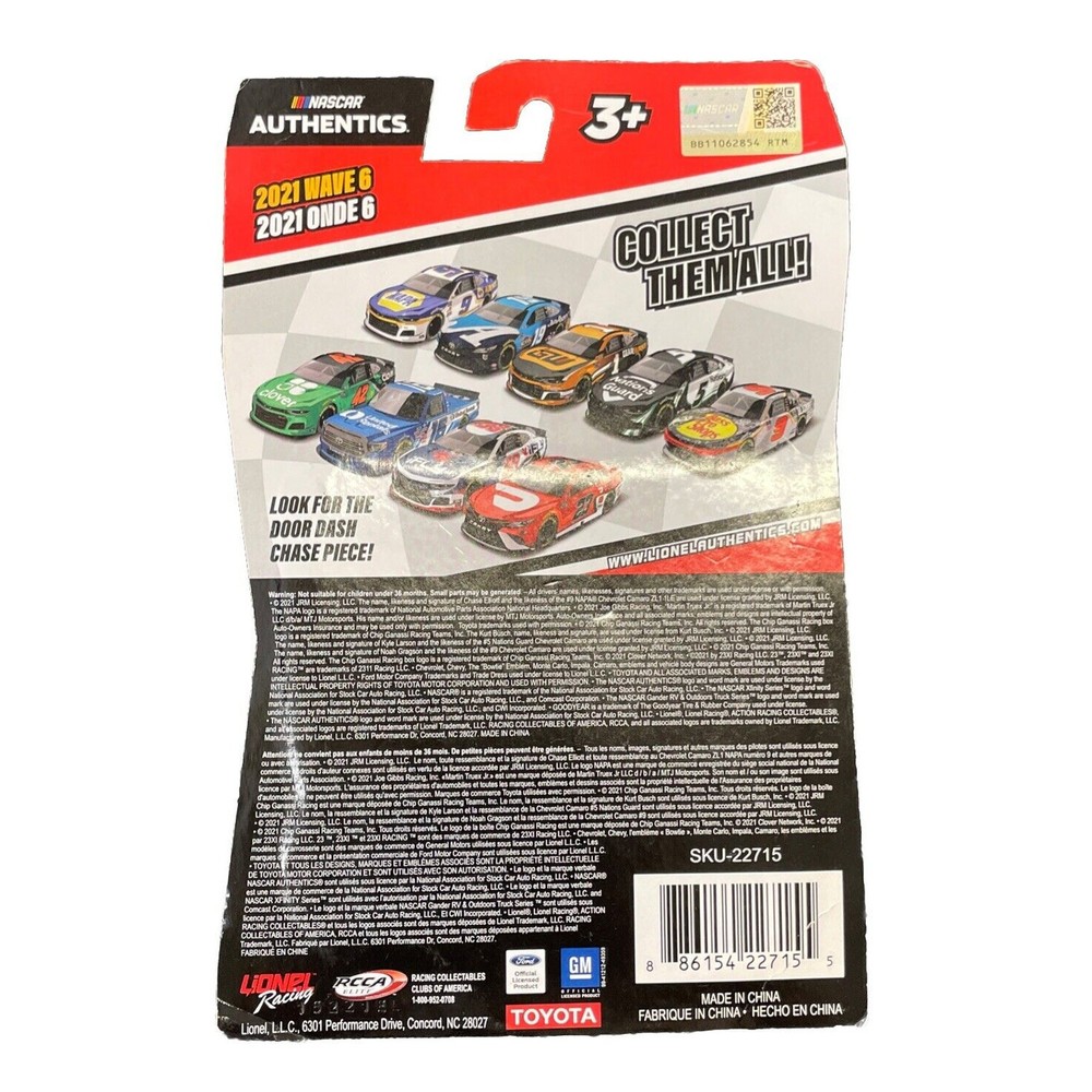 gtin13:Does not applyVehicle Type:NASCAR RacecarScale:1:64Country/Region of Manufacture:ChinaVehicle Year:2021Series:Monster Energy NASCAR Cup SeriesModel:NASCARVehicle Make:NASCARColor:Multi-ColorRace series:NASCAR Cup SeriesOrganization:NASCARUPC:Does not applyCharacter Family:CarsRecommended Age Range:3+Brand:NASCAR AuthenticsMaterial:DiecastDriver:Bubba Wallace