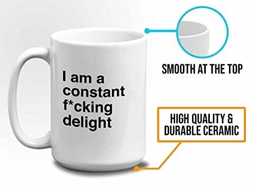 Menu 1. We require immediate payment. 2. We currently accept payment via eBay managed payments only. 3. Once payment is cleared, we will dispatch your shipment within 1-3 business days. Please refer to the "Shipping" tab for more information regarding shipping speed to your destination. Bubble Hugs Funny Jokes Coffee Mug 15 Oz White - I Am A Constant Fcking Delight - Sarcastic Funny Saying Mean Words Laughable Insulting Quotes for Friends Coworker Family Product description A PRESENT TO YOUR SOMEONE SPECIAL --- Our funny dictionary mug is a perfect gift especially if they love taking their morning coffee on the commute or on-the-go. Be it for your brother, sister, mom, dad, grandpa, grandma, best friend, boyfriend, girlfriend, son, daughter, fiance, husband, wife, in laws, cousins, aunts, uncles, boss, coworkers, him or her, you can also give this coffee mug to anyone and see them enjoy their happiness! EXCLUSIVE DESIGN LINGUISTIC JOKE COFFEE MUG --- T’s no better combination than having your beverages with this novelty mug that describes who you are. Our mug is exclusively designed by professional designer to fulfill your need and a great choice to hold your beverages hot or cold for hours. No more using disposable coffee cups! IRREPLACEABLE GRAMMAR POLICE MUG FOR A BUSY EVERYDAY LIFE --- Keeps drinks tasty! Our english major collegetudent coffee mug can withstand low to high temperature. This hilariou idiom coffee mug has outstanding print quality that will last a long time. We design our pun joke enthusiast mug with your comfortability in mind! PERFECT FOR ANY OCCASIONS --- Our vocabulary puns mug will be a perfect gift for Mother’s day, Father’s day, Sarcasm, birthday party, anniversary, graduation, Friendship’s day, Bosses’ day, retirement gift, Christmas party, Santa secret Gifts, and Thank you gift! Perfect as a gift for any occasions and will thrill the lucky recipient! WHAT ARE YOU WAITING FOR? --- Grab our grammar humorous mug now and see the difference with others. Do not order the second one if our pun joke enthusiast coffee mug does not make you smile. GET THIS 11 and 15oz Coffee mug NOW! PLEASE MESSAGE US IF YOU HAVE ANY OTHER QUESTIONS, AND MANY THANKS FOR READING ALL OF THIS. Copyright ©#. All Rights Reserved.