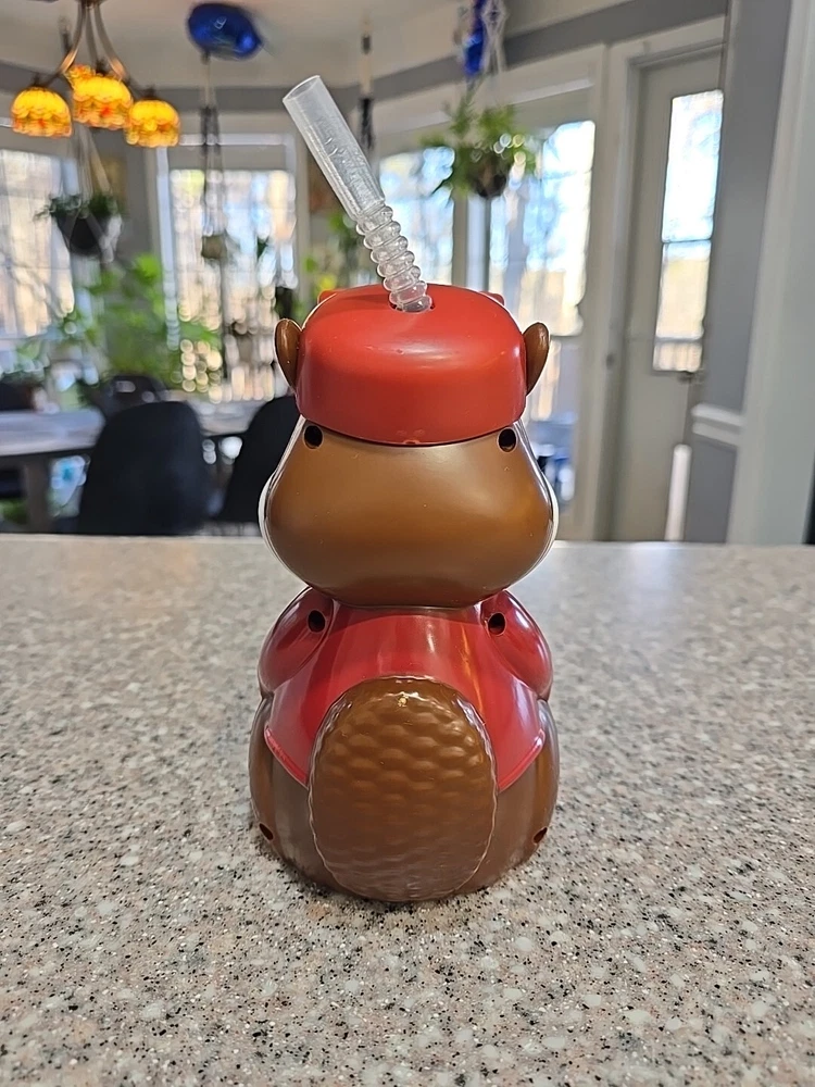 Buc-ee’s 3D 7” Beaver Souvenir Plastic Travel Drink Cup w/Hat Lid & Bendy Straw