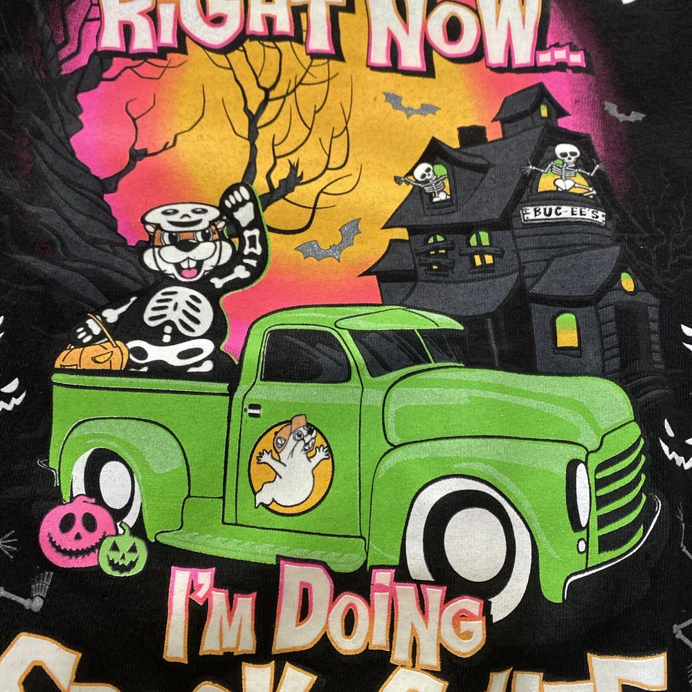 Buc-ee's Halloween Shirt Kids Youth XS Can't Talk Now Doing Spooky Stuff T-Shirt. In good, preowned condition. No stains or holes. Glows in the dark. Youth size XS. Measurements taken while lying flat: Armpit to armpit: 14.5" Sleeve length: 6" Total length: 17.5" Shipped from a smoke free home.