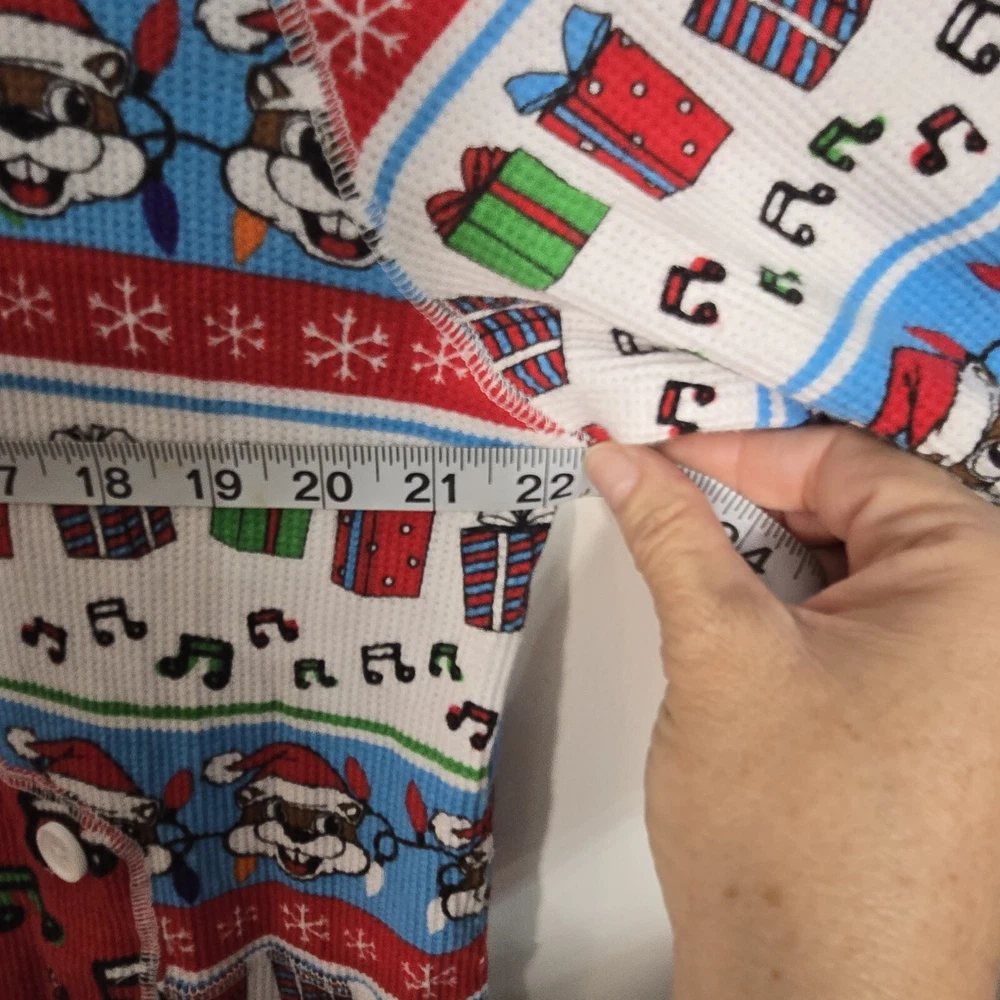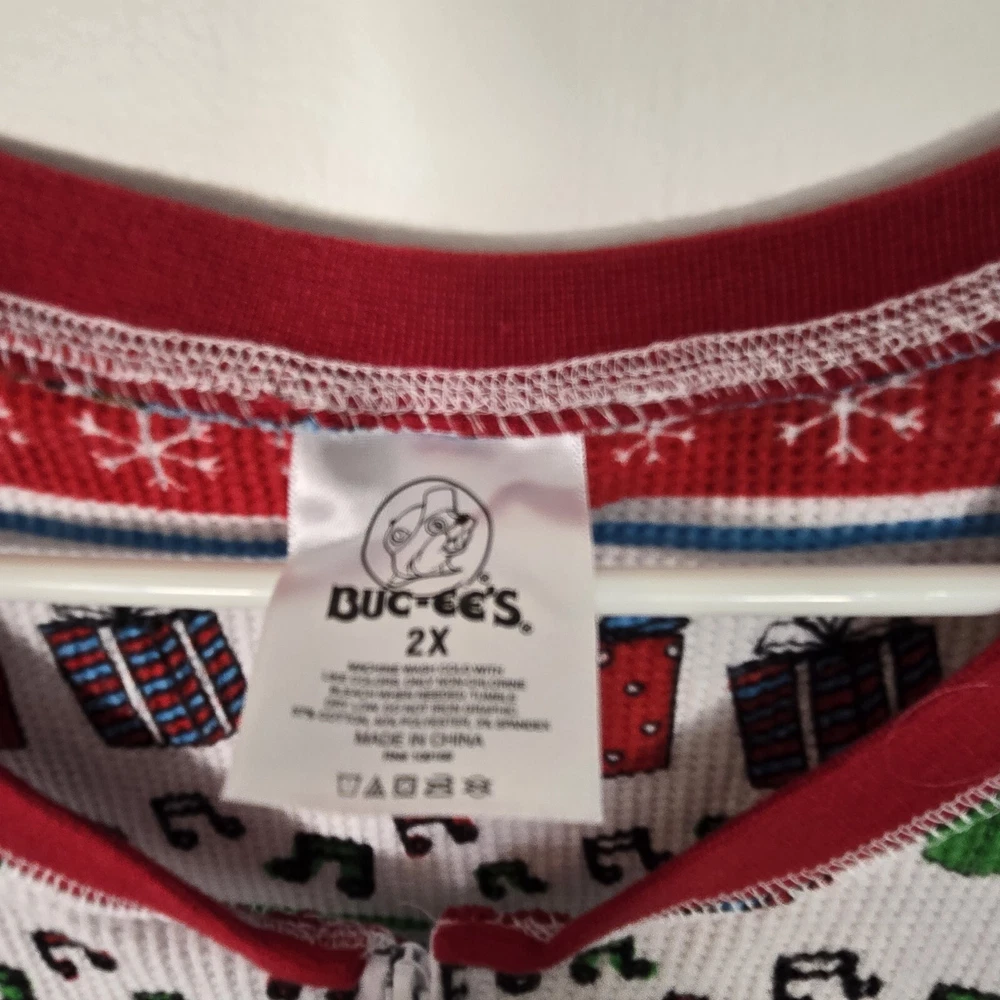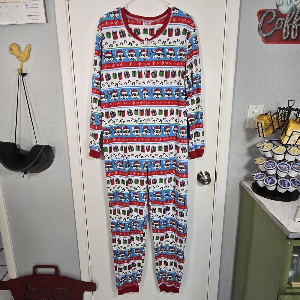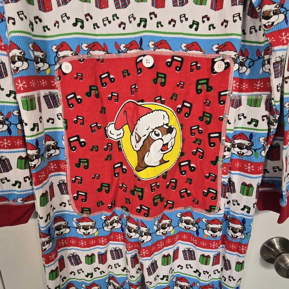 Get ready for the holiday season with these festive Buc-ees one-piece pajamas. Featuring a striped pattern, long sleeves, and a crew neckline, these pajamas are perfect for staying cozy and comfortable during the chilly winter and fall seasons. The zip closure ensures a secure fit, while the lightweight cotton blend material makes them easy to move around in. These pajamas are machine washable for easy care and maintenance. The multicolor design and Christmas theme add a fun touch to your sleepwear collection. Available in size XL, these pajamas are made in China and are perfect for any woman who wants to stay comfortable and stylish while she sleeps. *Please inspect all photos of item(s) before purchasing. If you have any questions, please feel free to ask.