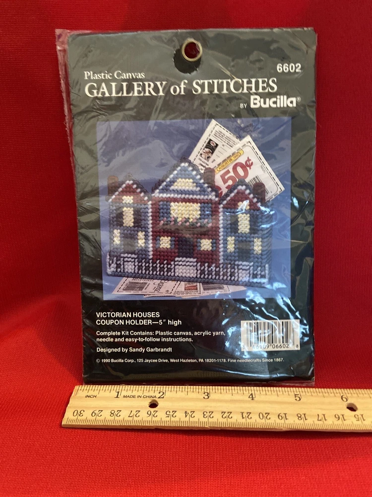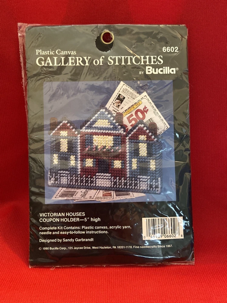 Bucilla COUPON HOLDER Plastic Canvas Cross Stitch Kits #6602 - Victorian Houses. Condition is New. Shipped with USPS First Class Package.