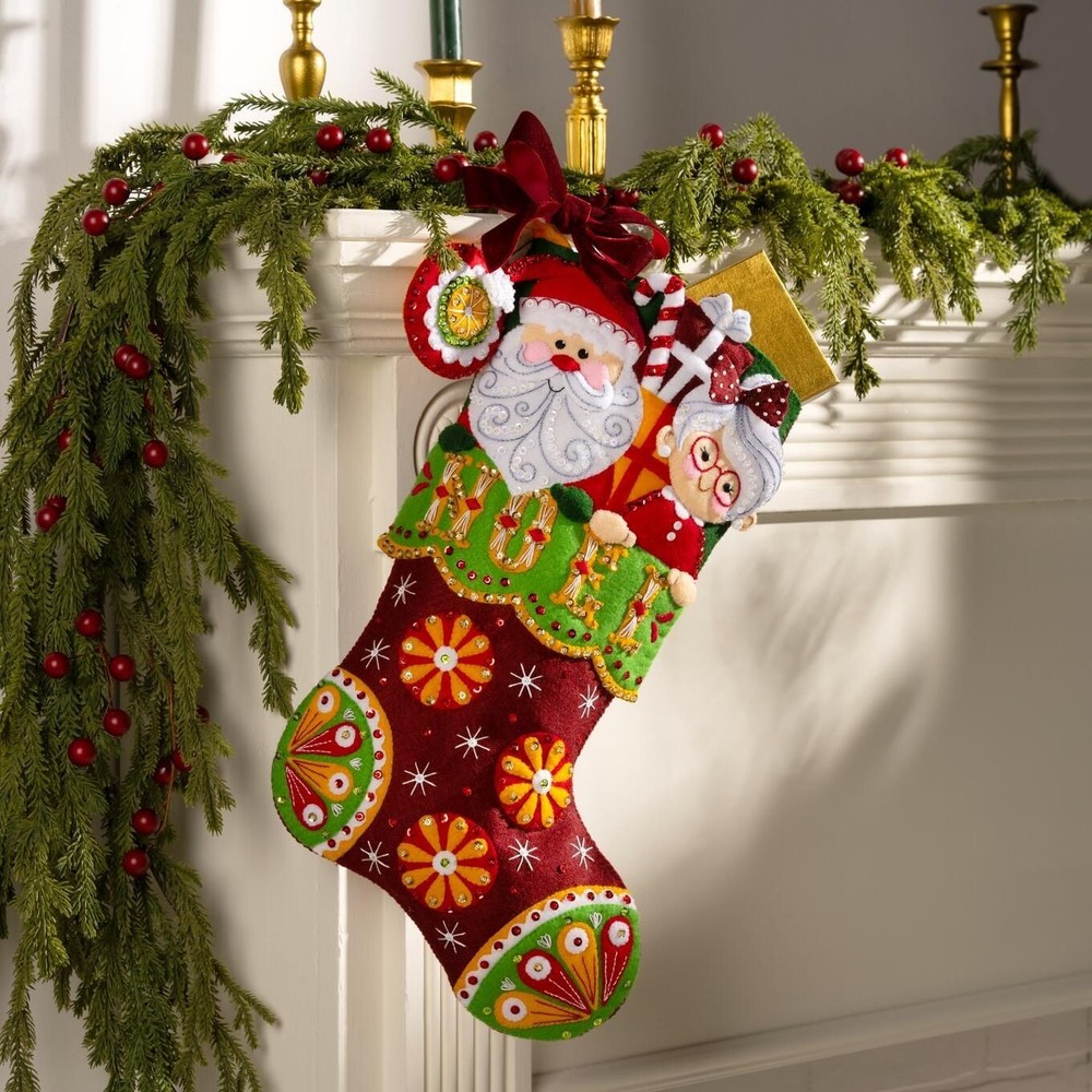 Bucilla Felt Applique Christmas Stocking Kit NOEL NOSTALGIA Mr & Mrs Claus 18 in