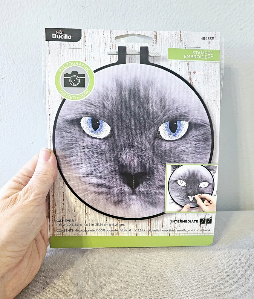 Add a charming touch to your embroidery collection with this Bucilla Stamped Embroidery Kit. The kit features a beautiful design of cat eyes that you can easily stitch onto the fabric. The kit includes all the necessary materials required to complete the embroidery, such as stamped fabric, needle, and thread. Create a beautiful and unique piece of needlework that you will cherish for years to come with this DIY kit from Bucilla.