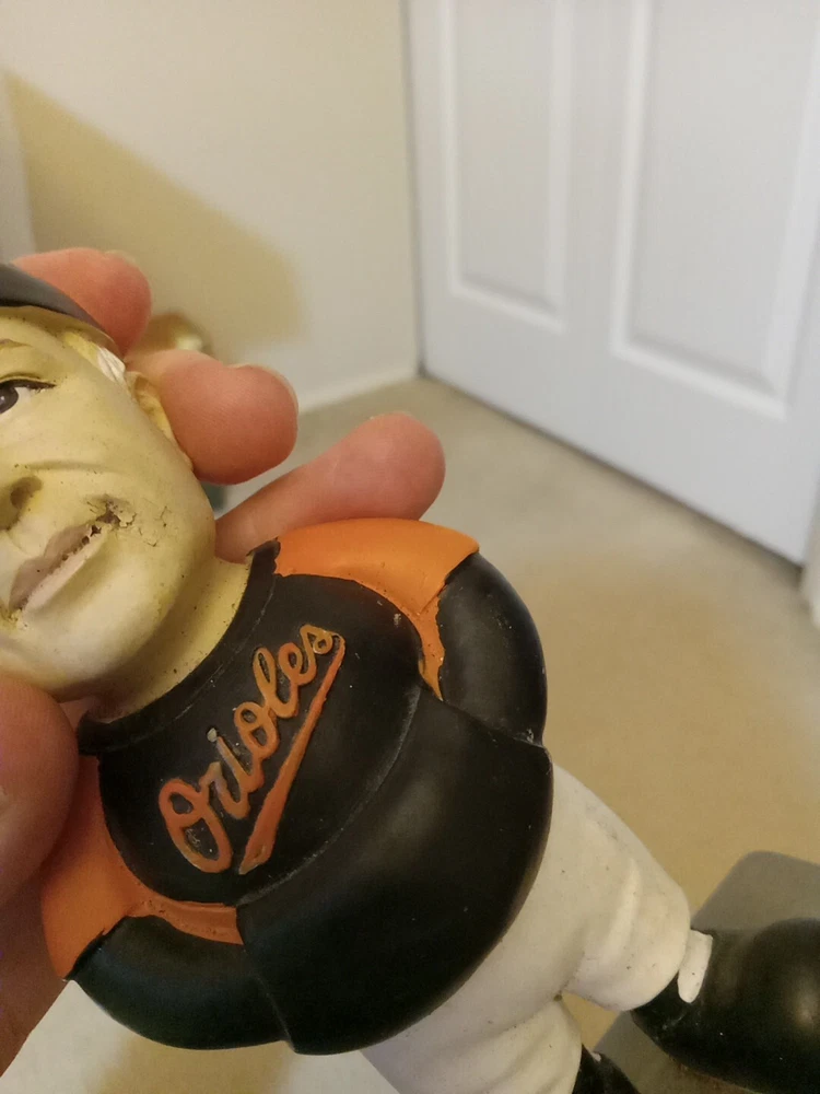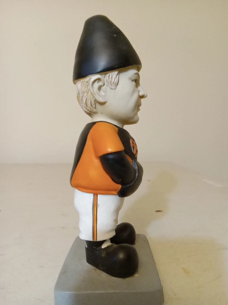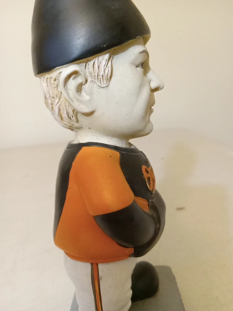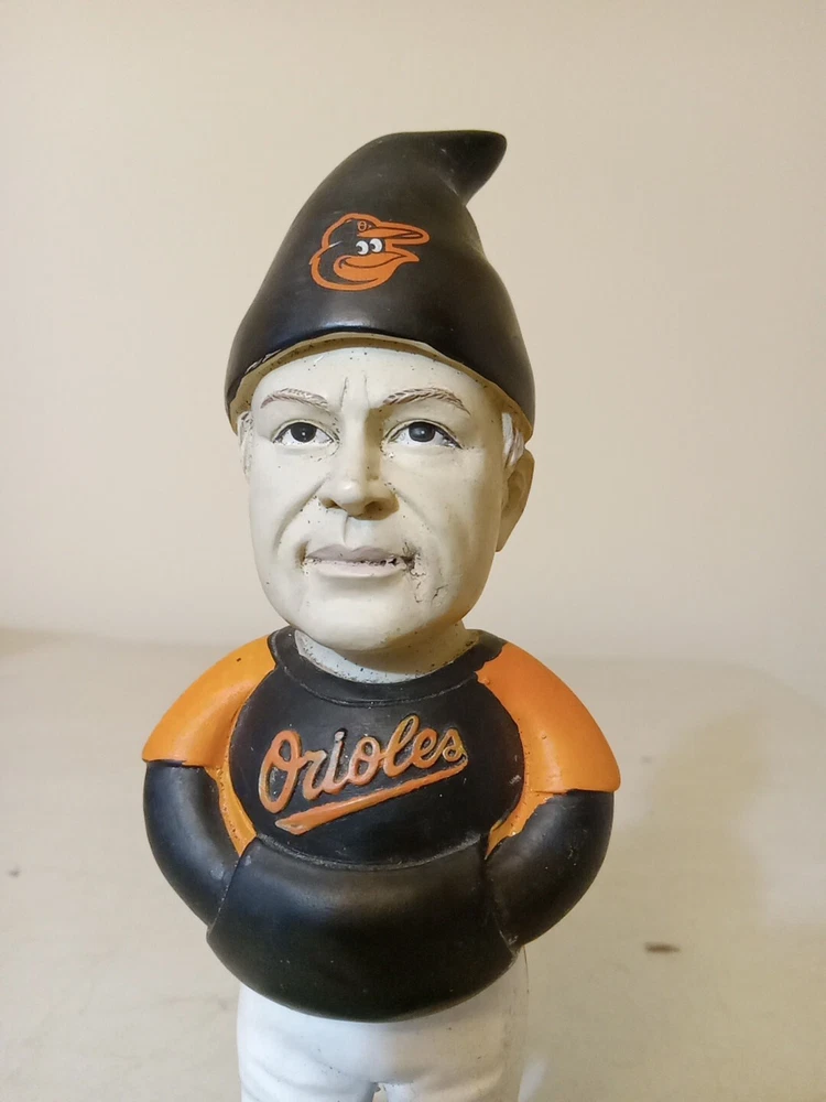 Pre owned and used. Baltimore Orioles Buck Showalter garden Gnome 2014 AL manager of the year. Has some sun damage and some cracking in paint on face. Has some dirt and dust in some crevasses and tight areas. Flaws are shown in photos. Ships with usps ground advantage within two business days. Feel free to contact me with any questions or offers.
