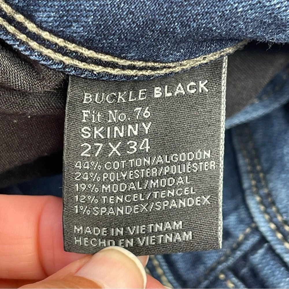Garment Care: Machine Washable Handmade: No Rise: Low (6.5-8.5 in) Waist Size: 27 in Closure: Zip Pocket Type: 5-Pocket Design Vintage: No Type: Jeans Season: Winter, Summer, Spring, Fall Pattern: Solid Department: Women Style: Skinny Country/Region of Manufacture: Vietnam Material: Cotton Blend Seller Notes: “In excellent, pre-owned condition with no flaws to note.” Features: Stretch, Pockets Brand: Buckle Fabric Type: Denim Theme: City, Preppy Fit: Regular Color: Blue Accents: Logo Fabric Wash: Dark Size Type: Regular Size: 27 Model: The Buckle Black No. 76 Product Line: Buckle Bke Personalize: No Inseam: 32.5 in