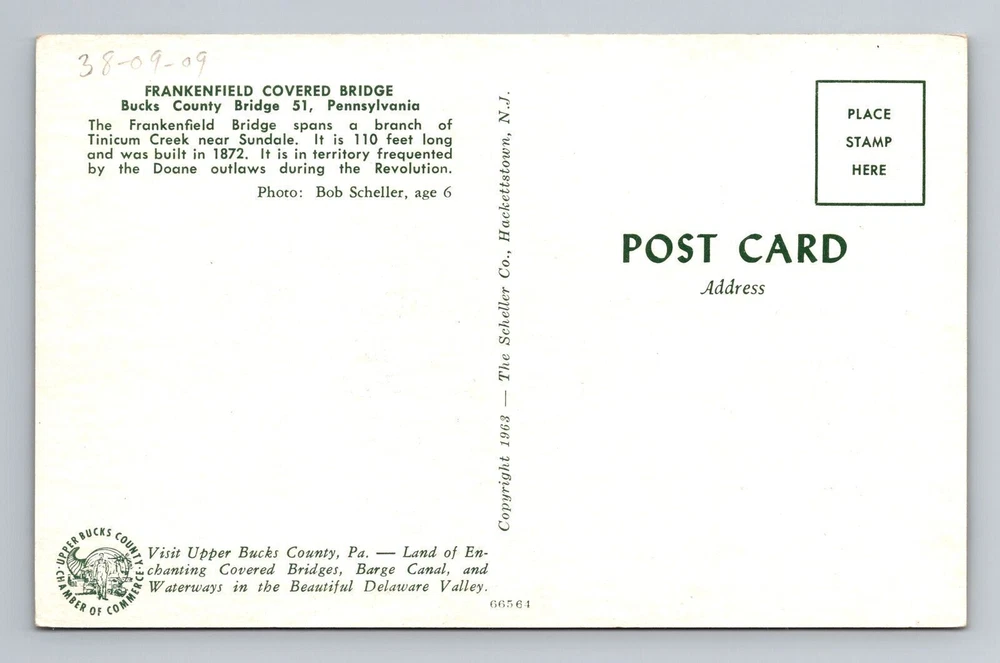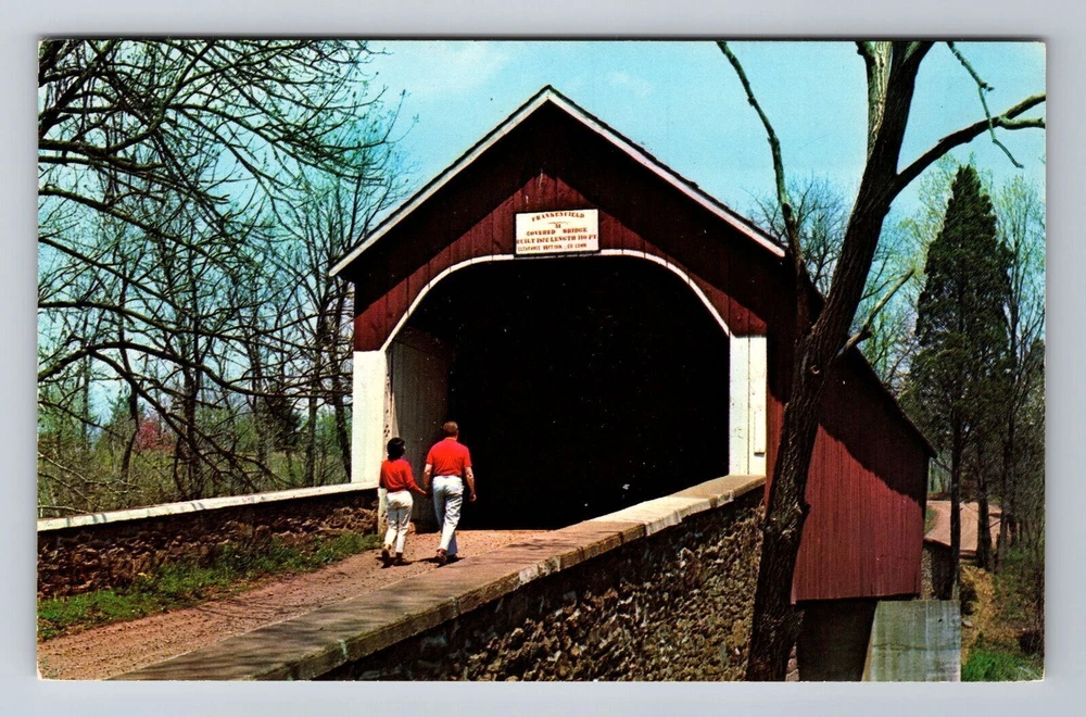 Bucks County PA-Pennsylvania Frankenfield Covered Bridge Vintage Postcard