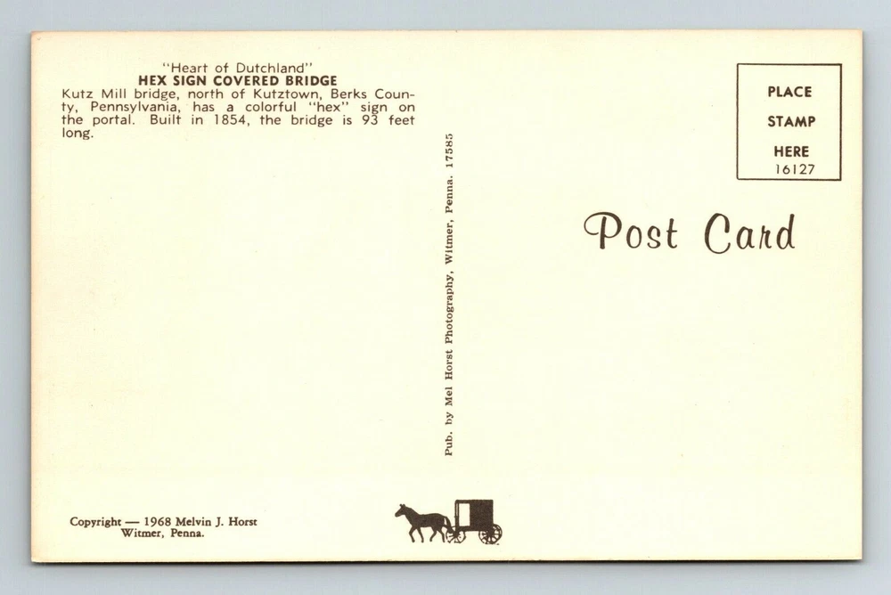 Bucks County PA-Pennsylvania, Hex Sign Covered Bridge, Vintage Postcard